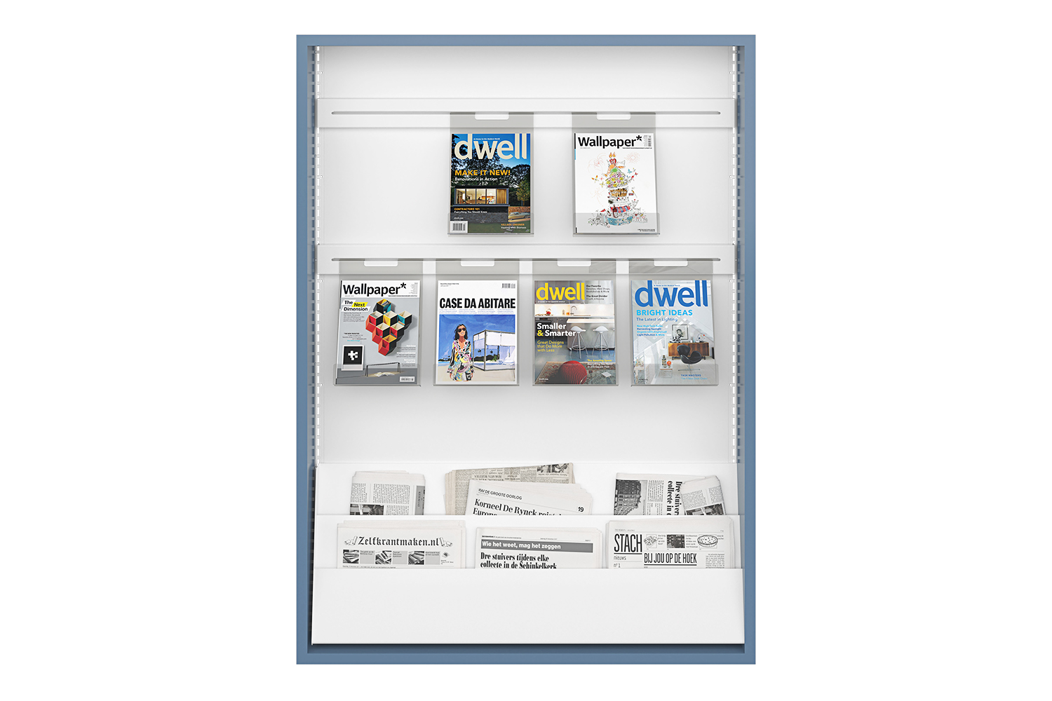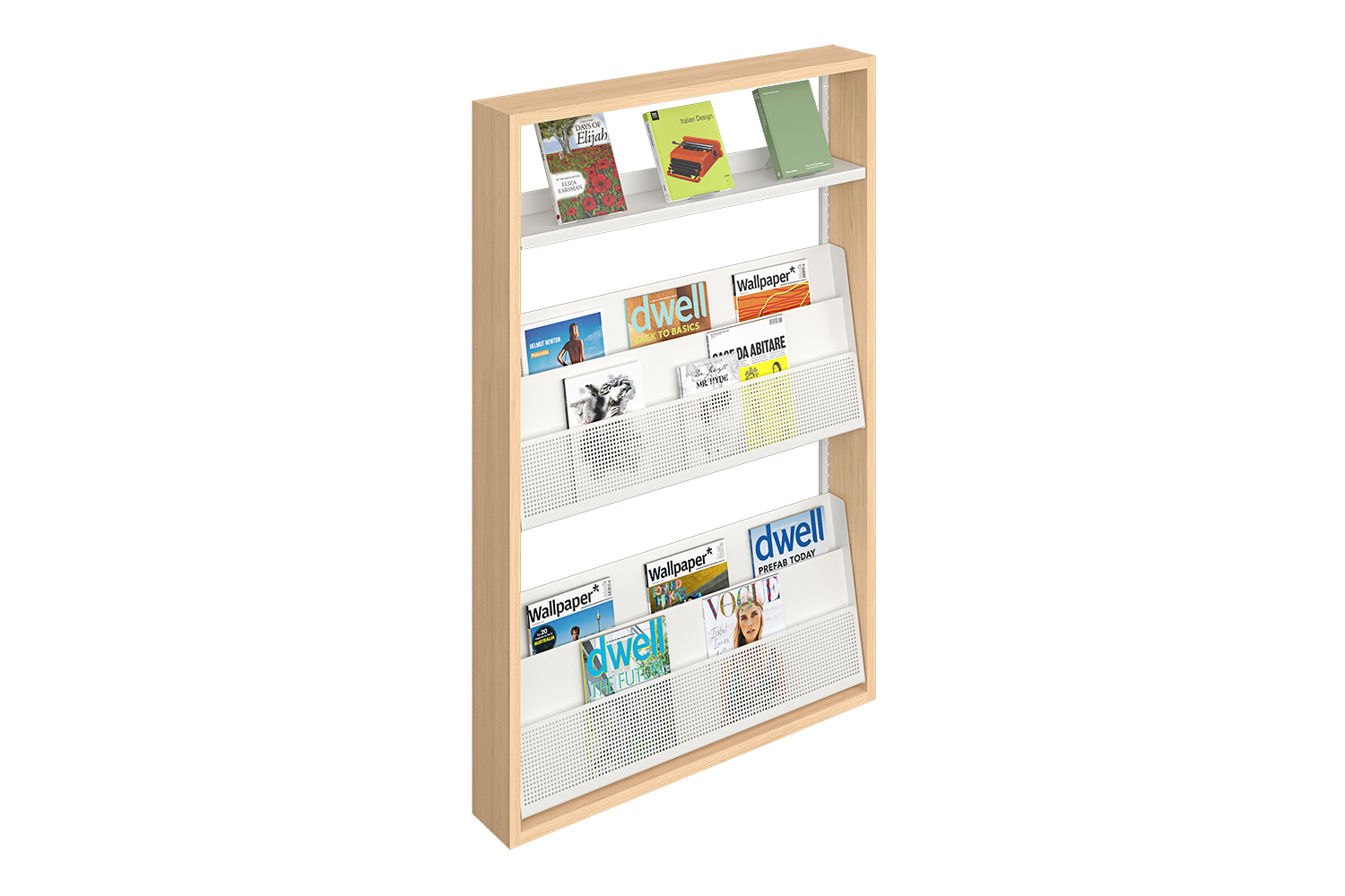 60/30 Vægdisplay er en alsidig og stilfuld løsning til præsentation af bøger, magasiner og andre medier.