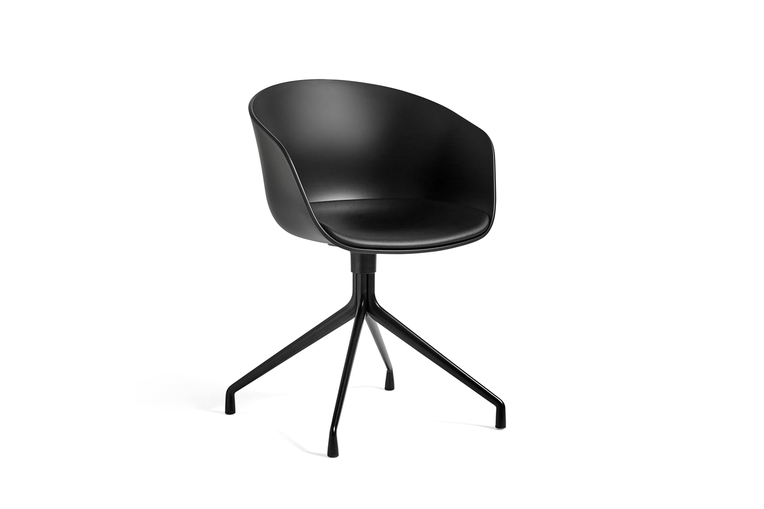 Skalstolen fås med en stabil drejefod, og skallen er støbt med buet ryg og armlæn og har en fantastisk god siddekomfort.