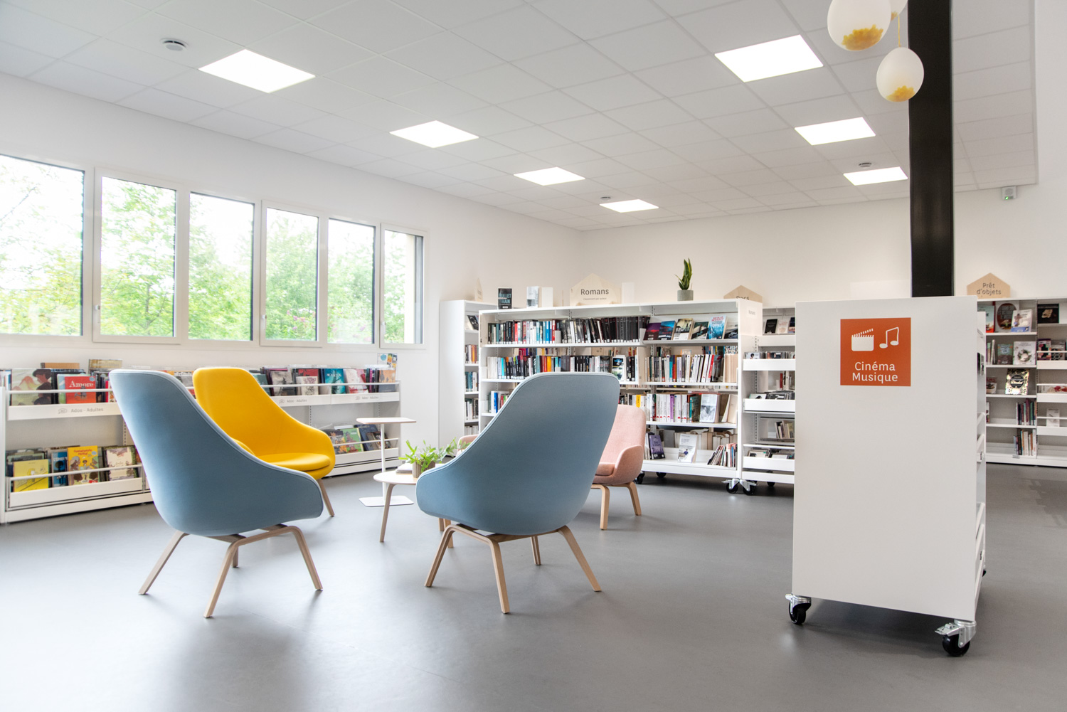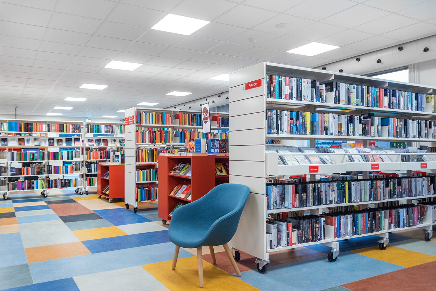 Det omfattende udvalg af farver og polstringsmuligheder skaber mulighed for næsten uendelige designkombinationer i biblioteksindretningen.