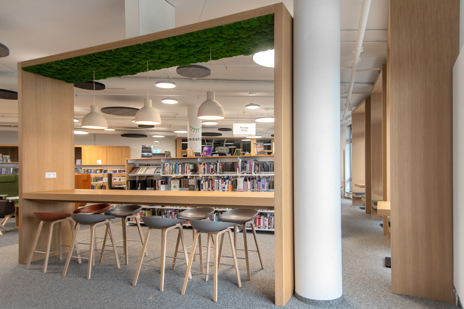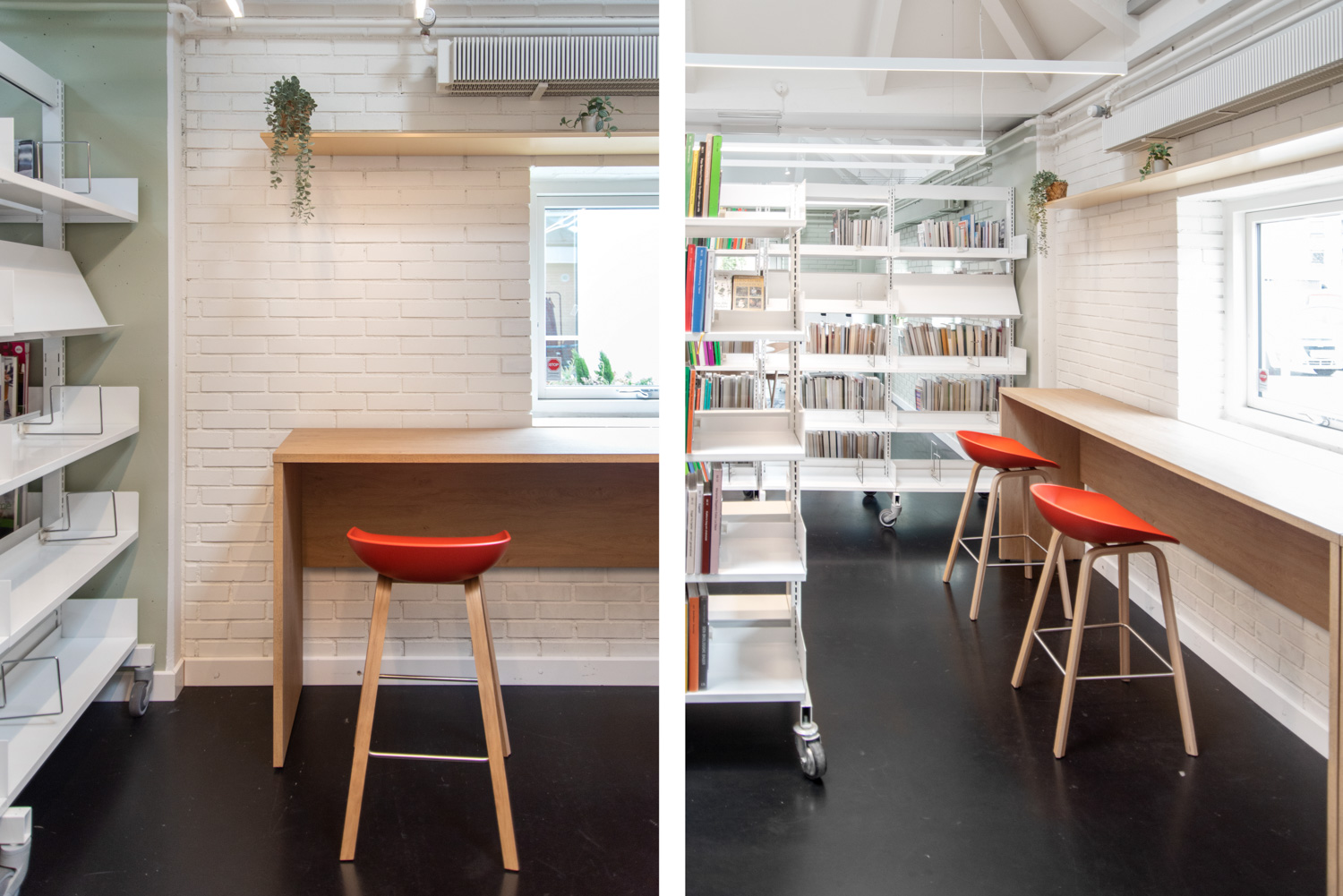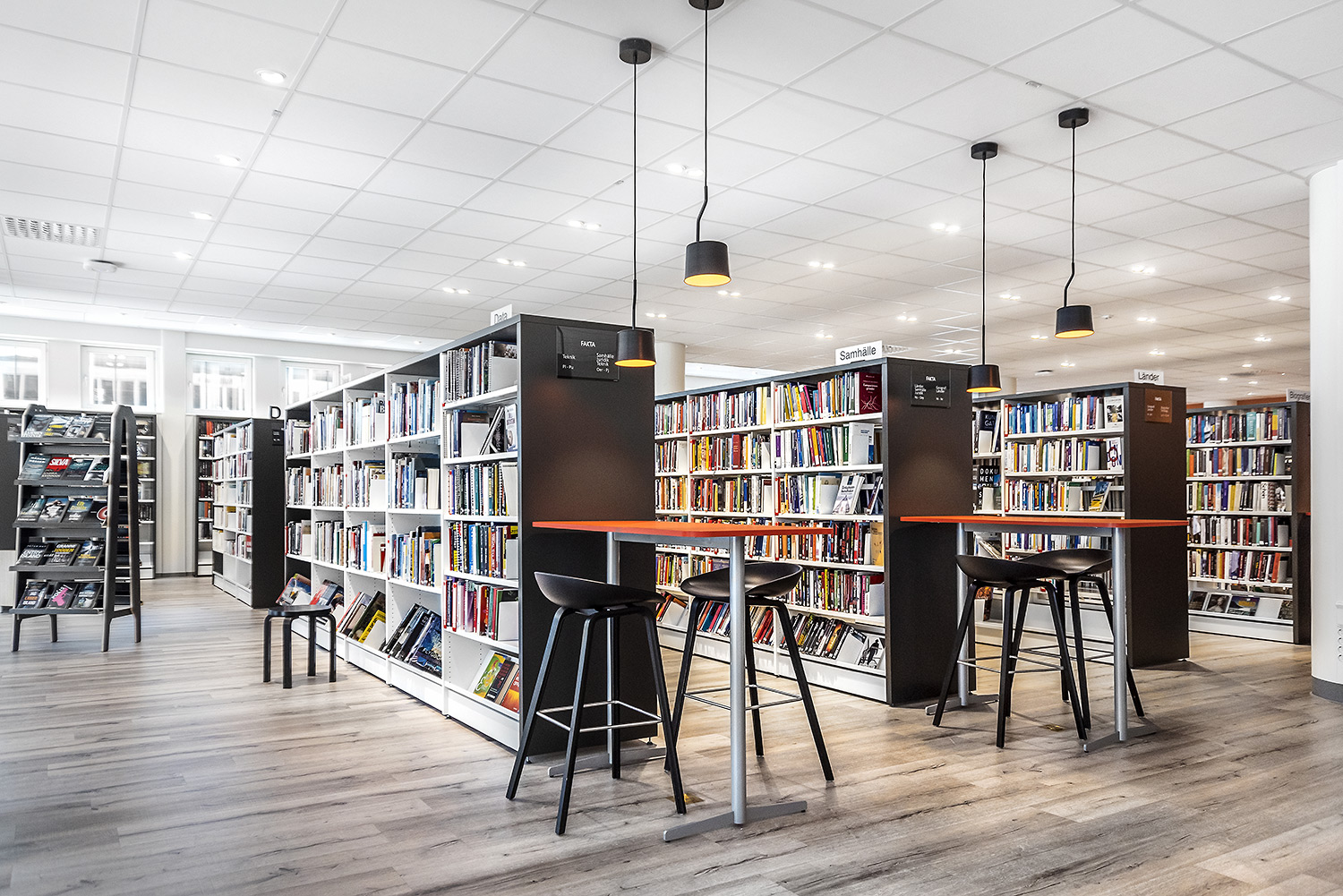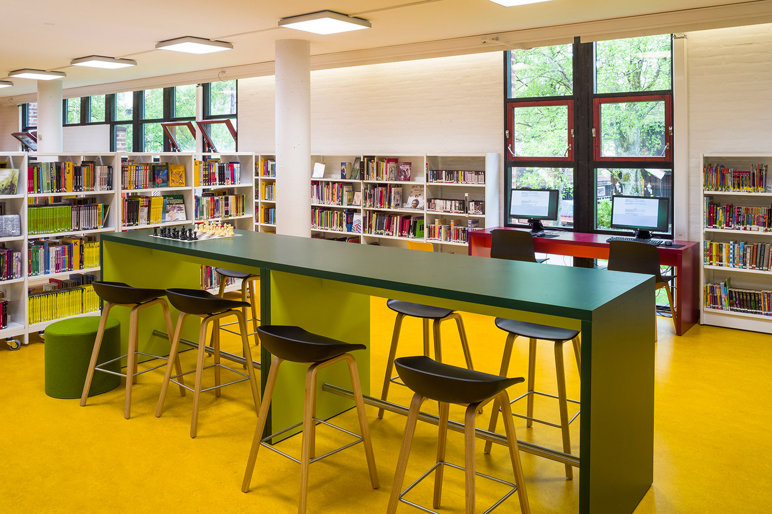 Det omfattende udvalg af farver og polstringsmuligheder skaber mulighed for næsten uendelige designkombinationer i biblioteksindretningen.