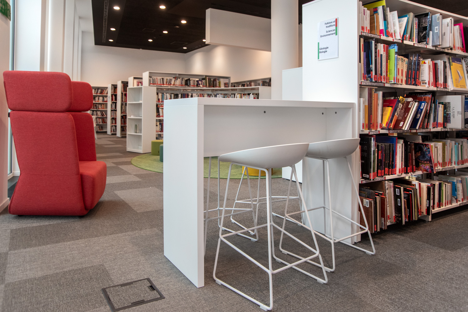 Det omfattende udvalg af farver og polstringsmuligheder skaber mulighed for næsten uendelige designkombinationer i biblioteksindretningen.