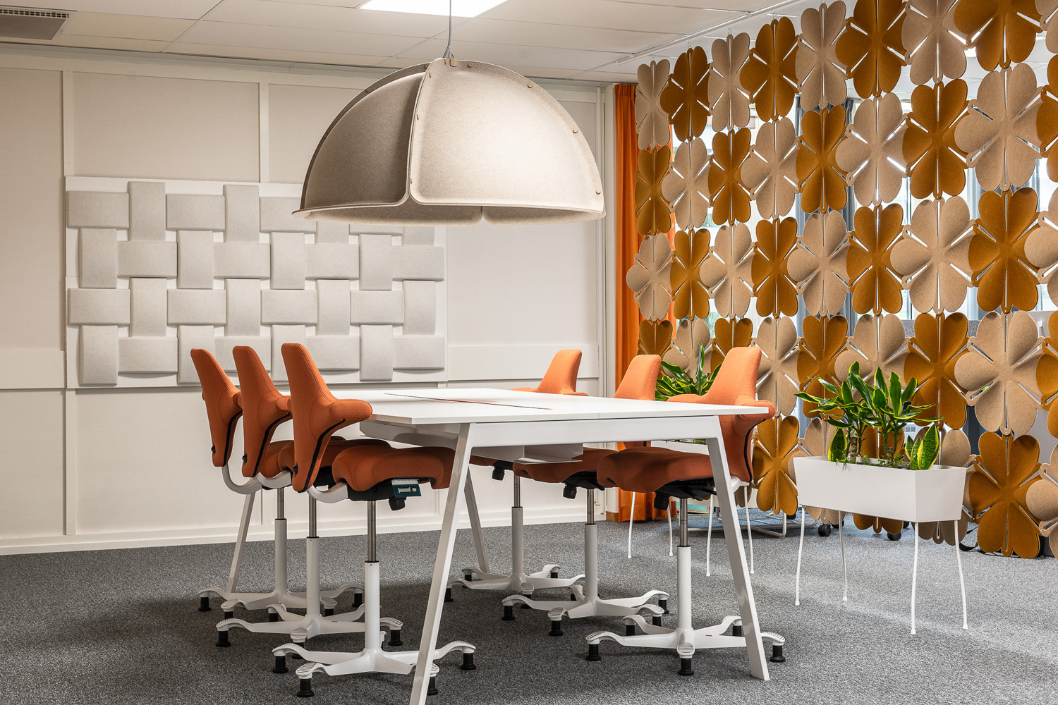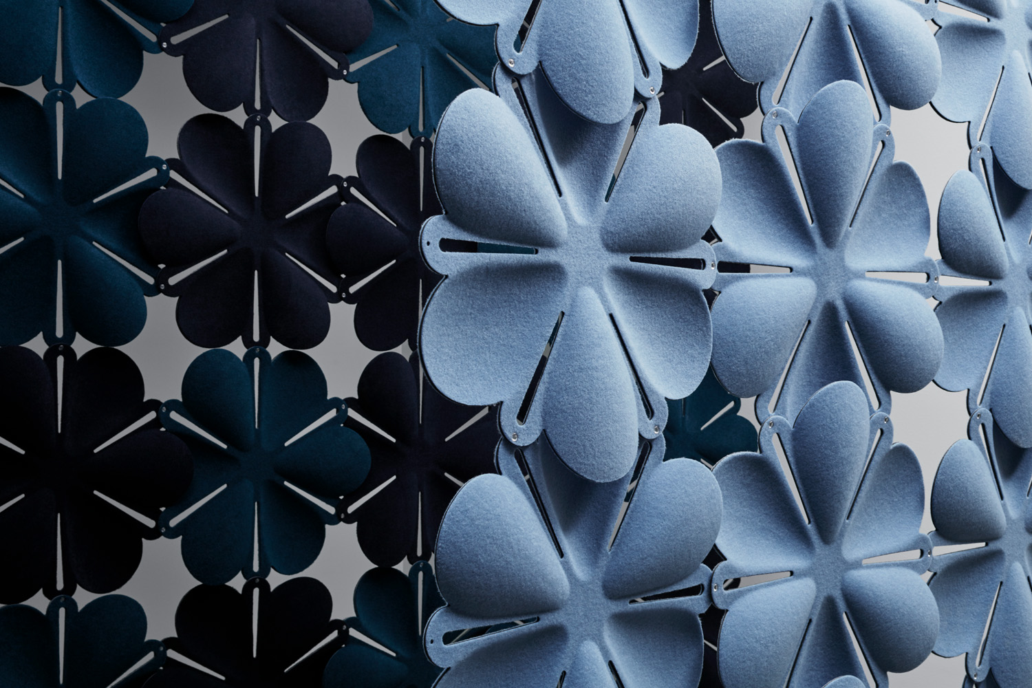 De lette og luftige Airbloom fra Abstracta kan bruges til at skabe dynamiske rum og adskillelse, samtidig med at de forbedrer akustikken. De blomsterlignende moduler tager inspiration i naturen og sættes sammen ved hjælp af små plastkoblinger.