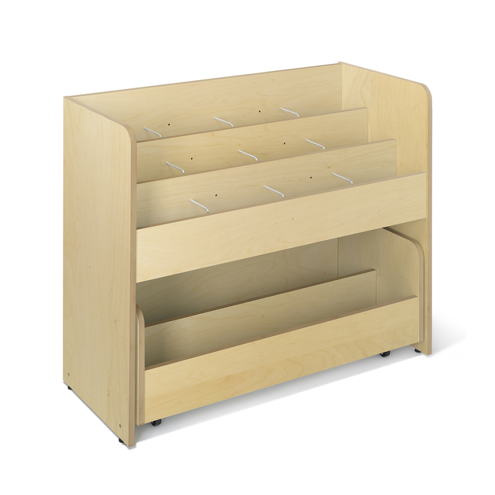 Gummimåtter i den øverste sektion sikrer at selv få bøger bliver stående.
