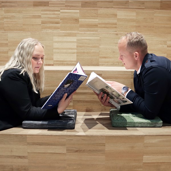 Puderne fås i flere marmorerede farver, som er inspireret af naturen, og er ideelle til brug på gulv, bænke, trapper osv.