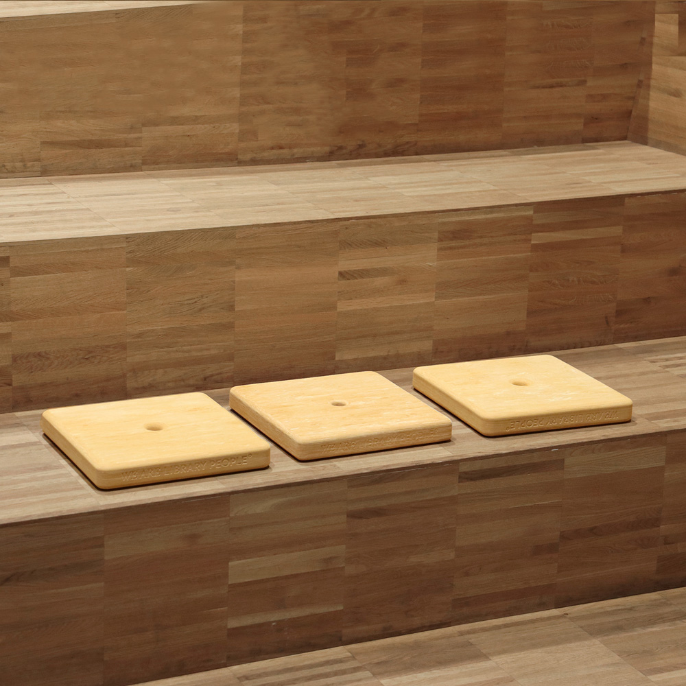 Den skridsikre pude er fast og sætter ikke mærker på gulvet. Skummet er presset hårdt men er stadig et blødt materiale, som vil få patina ved brug.