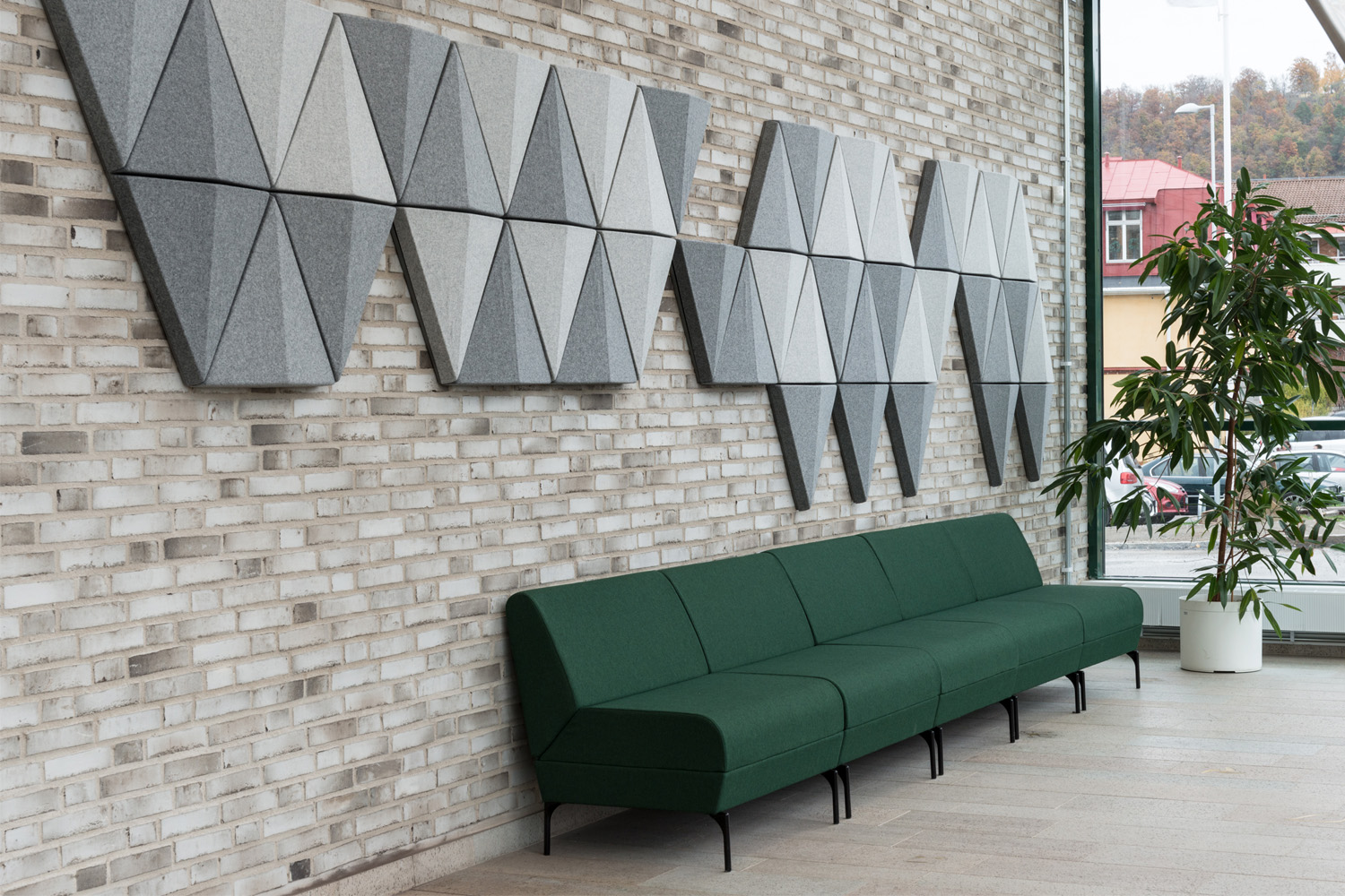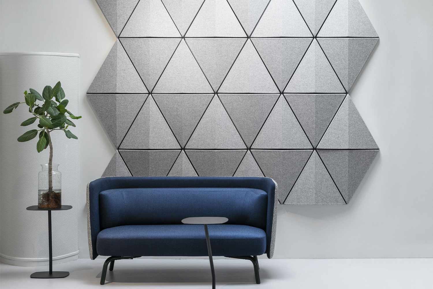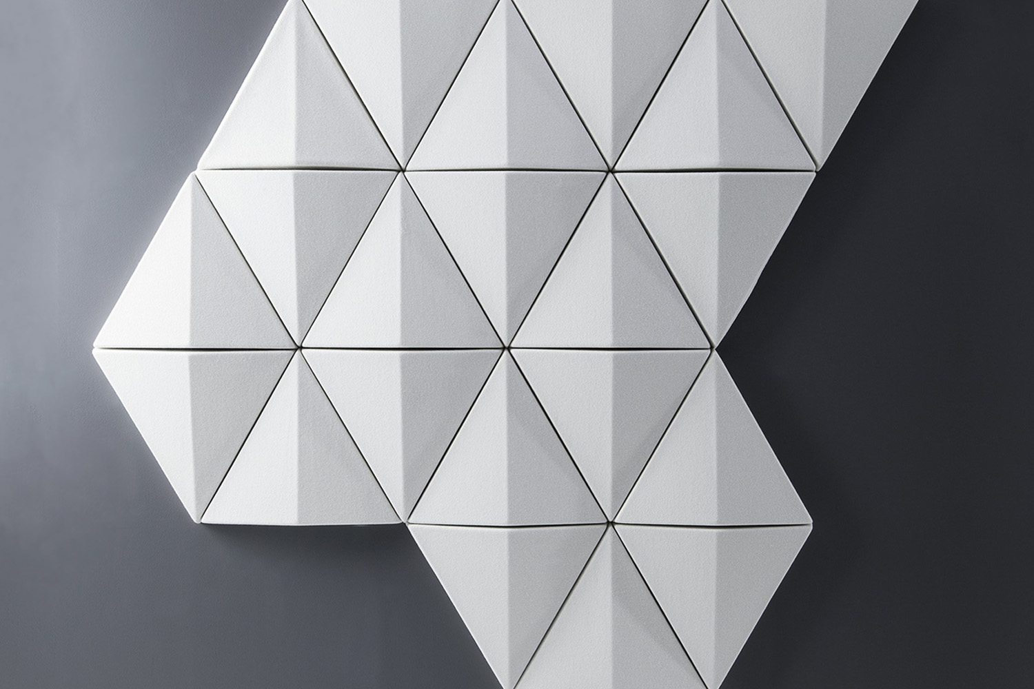 De trekantformede og lydabsorberende paneler giver ikke kun et legende og flot udtryk, men kan også tilpasses og kombineres efter behov, hvilket giver mulighed for at skabe unikke og funktionelle vægdesigns. Modulerne kan placeres både vandret og lodret alt efter, så det er muligt at skabe sine egne, sjove mønstre på væggen.