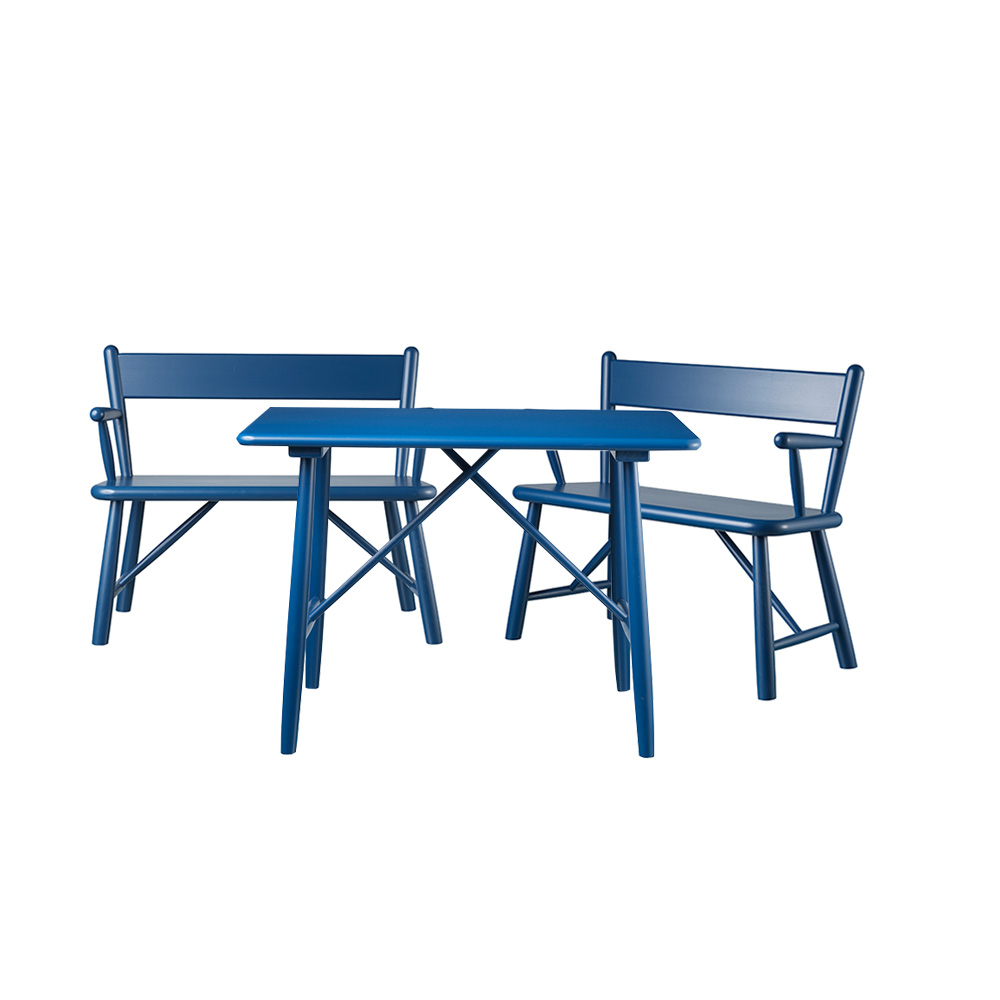 Møblerne er fremstillet af lakeret bøg og kræver minimal vedligeholdelse. De kan nemt rengøres ved blot at tørre af med en fugtig klud.