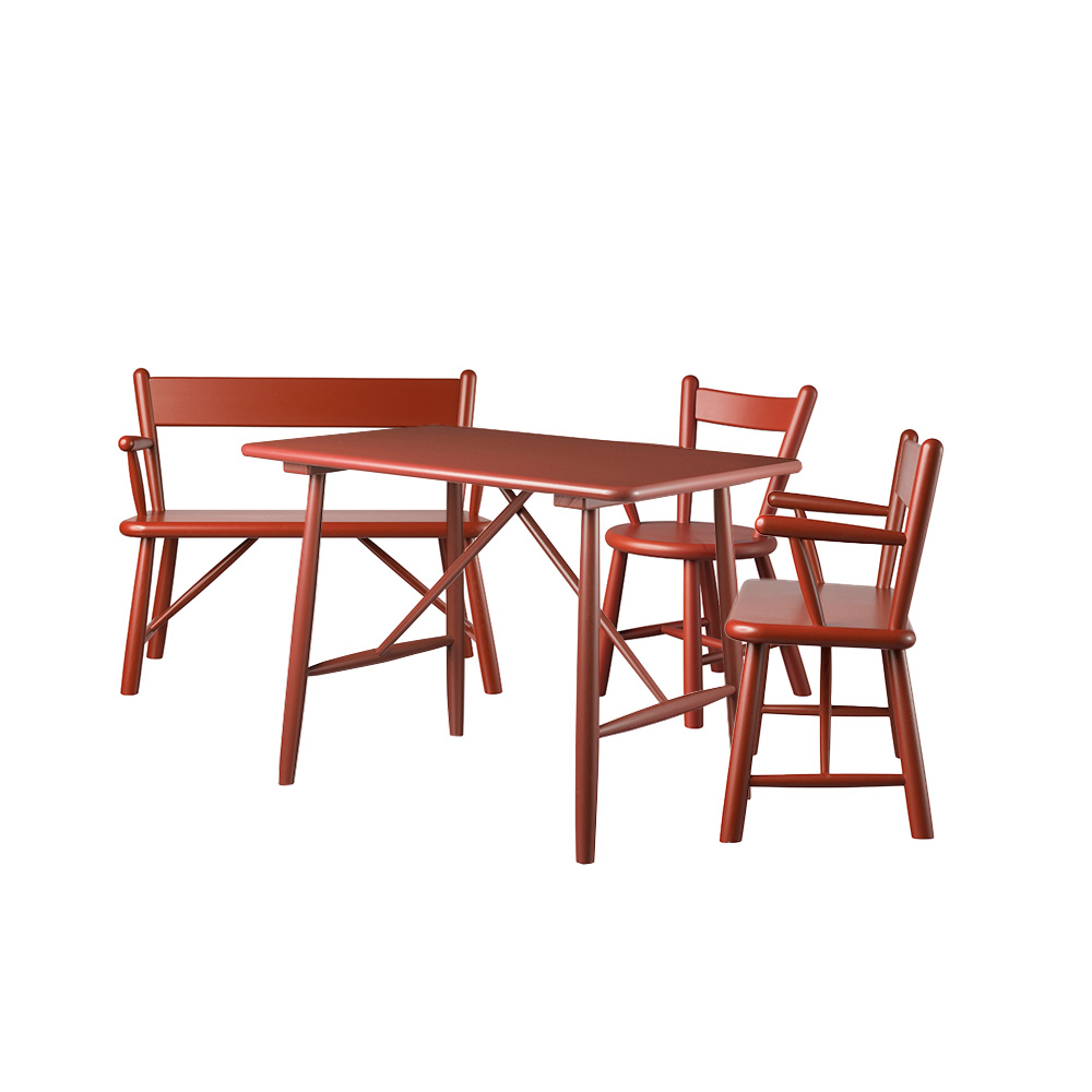 Møblerne er fremstillet af lakeret bøg og kræver minimal vedligeholdelse. De kan nemt rengøres ved blot at tørre af med en fugtig klud.