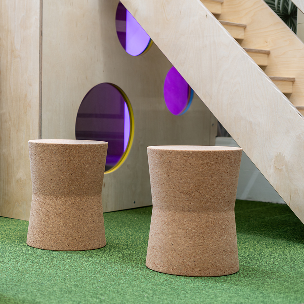 Kork er rengøringsvenligt, lyddæmpende og brandhæmmende og dermed perfekt til indretning i offentlige miljøer og især i børnemiljøer.