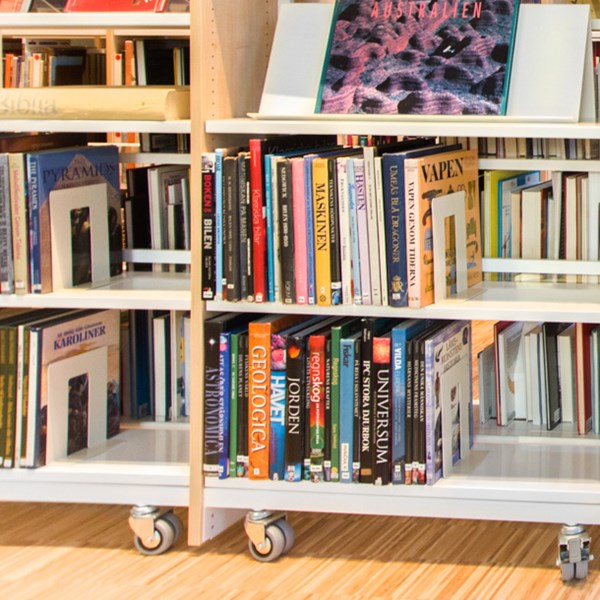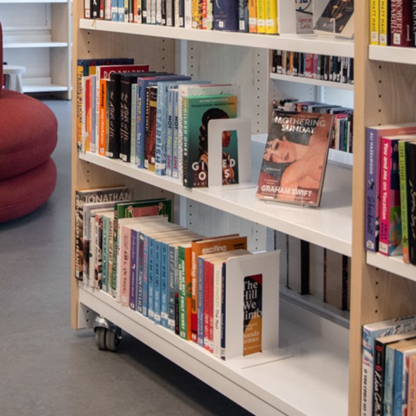 Praktisk bogstøtte i solidt design med buet overkant, der er nem at gribe om.
