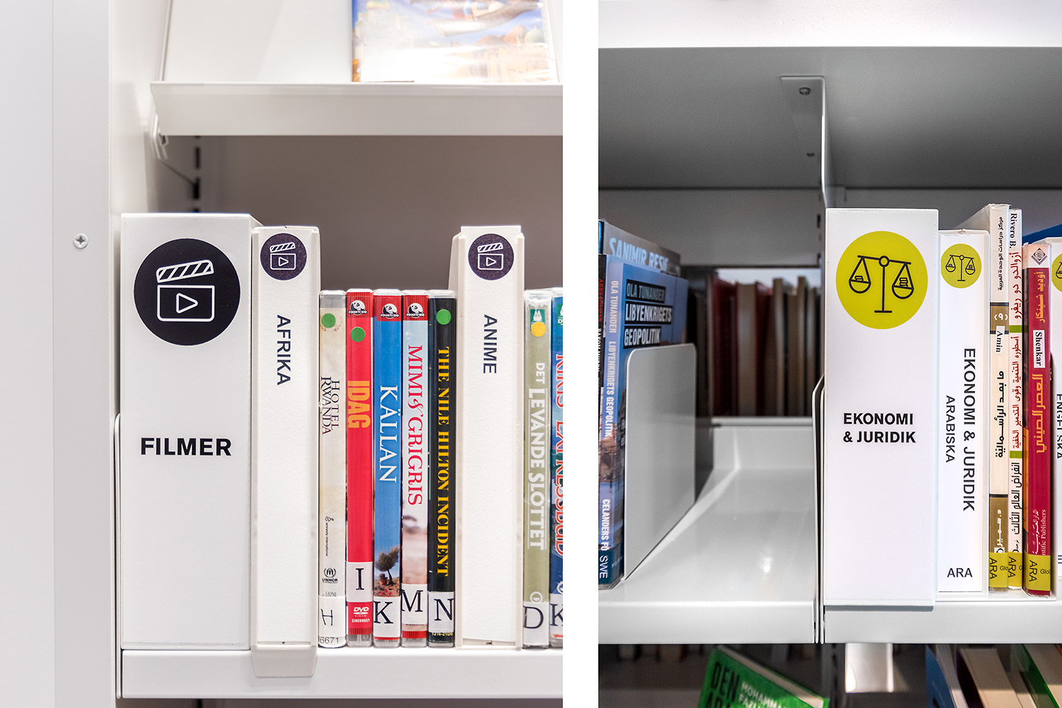Skillestøtten består af tre dele: to sider og en bundplade med stop for at forhindre, at den rykker ind på hylden.