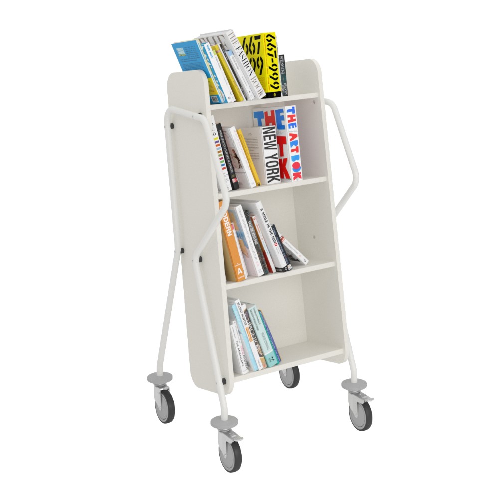 Bogvognens hældning sikrer stabil opbevaring og giver et godt overblik over de bøger, du skal håndtere.