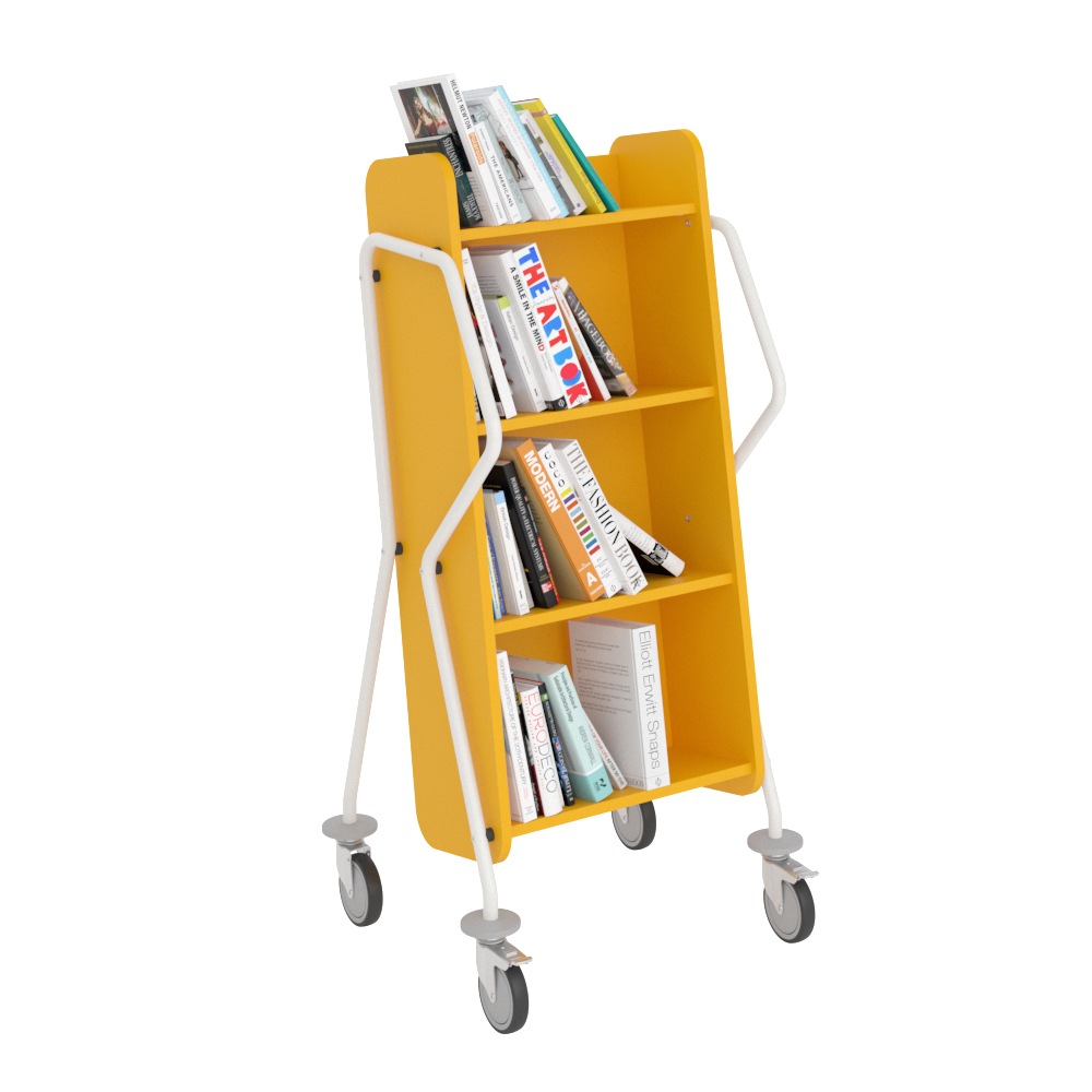 Bogvognens hældning sikrer stabil opbevaring og giver et godt overblik over de bøger, du skal håndtere.