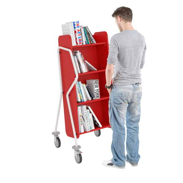 Bogvognens hældning sikrer stabil opbevaring og giver et godt overblik over de bøger, du skal håndtere.