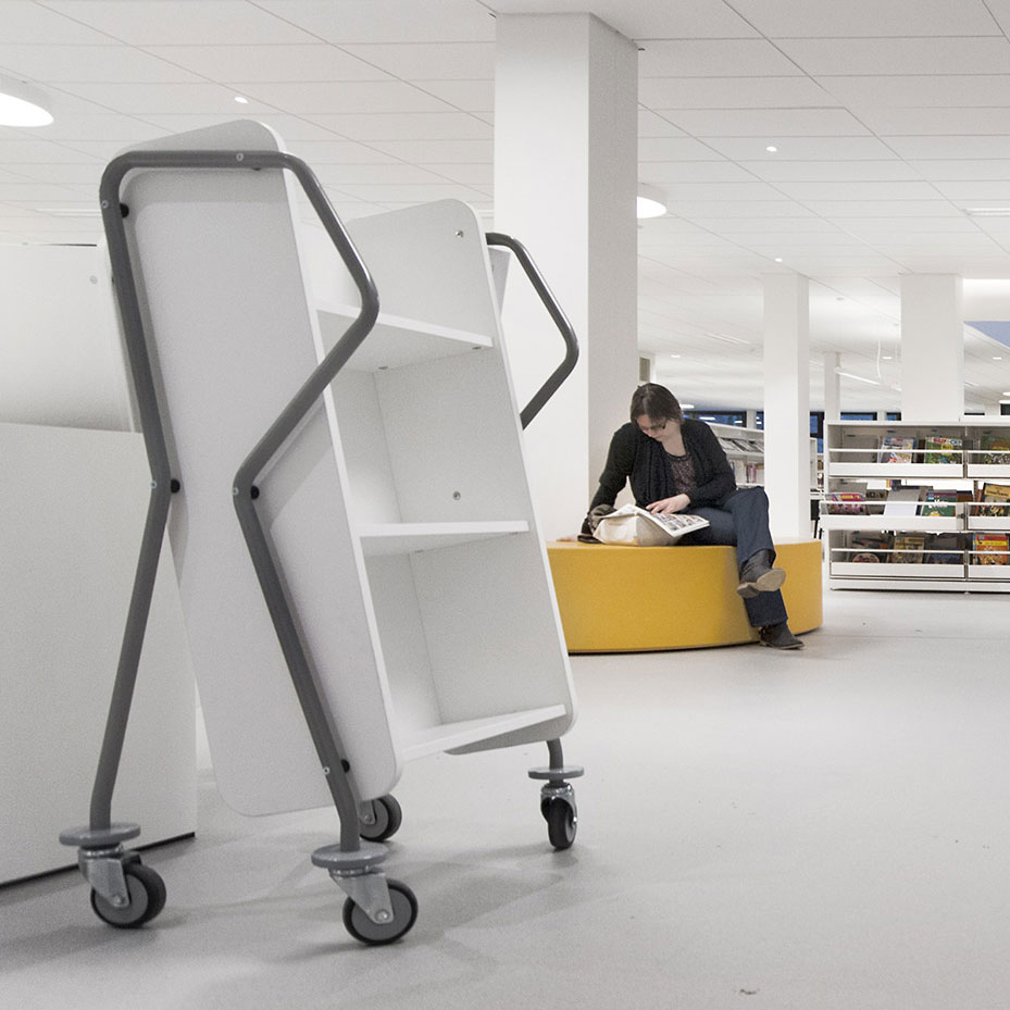 Bogvognens hældning sikrer stabil opbevaring og giver et godt overblik over de bøger, du skal håndtere.
