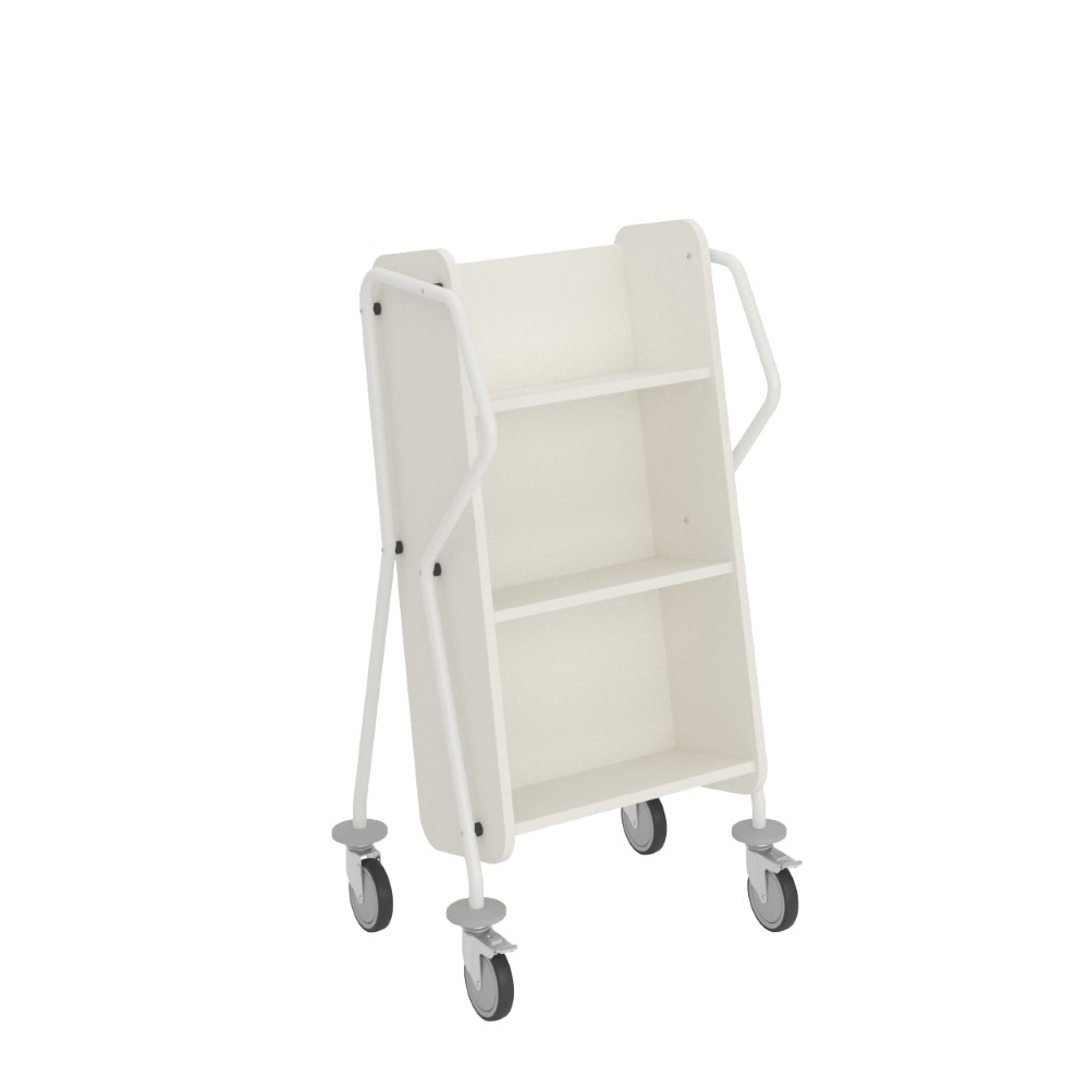 Ergonomisk, brugervenlig, enkeltsidet bogvogn med 3 hylder. Rigelig afstand mellem hylderne sikrer, at vognen også passer til bøger i større format.
