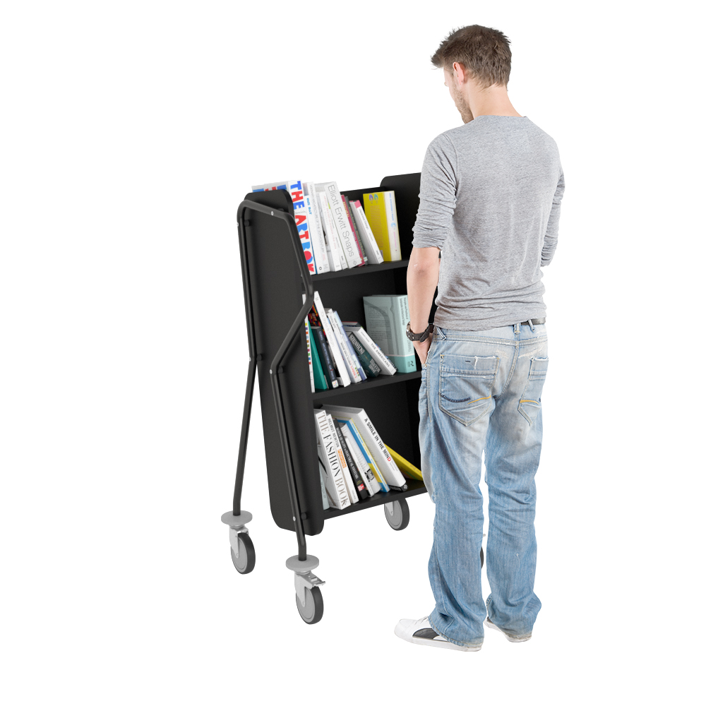 Bogvognens hældning sikrer stabil opbevaring og giver et godt overblik over de bøger, du skal håndtere.