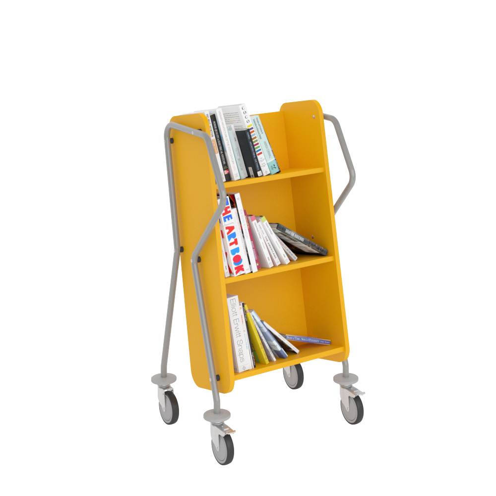 Ergonomisk, brugervenlig, enkeltsidet bogvogn med 3 hylder. Rigelig afstand mellem hylderne sikrer, at vognen også passer til bøger i større format.