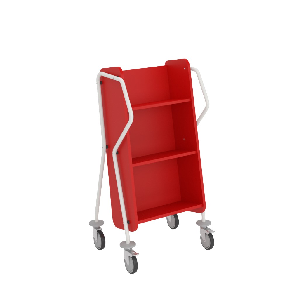 Ergonomisk, brugervenlig, enkeltsidet bogvogn med 3 hylder. Rigelig afstand mellem hylderne sikrer, at vognen også passer til bøger i større format.
