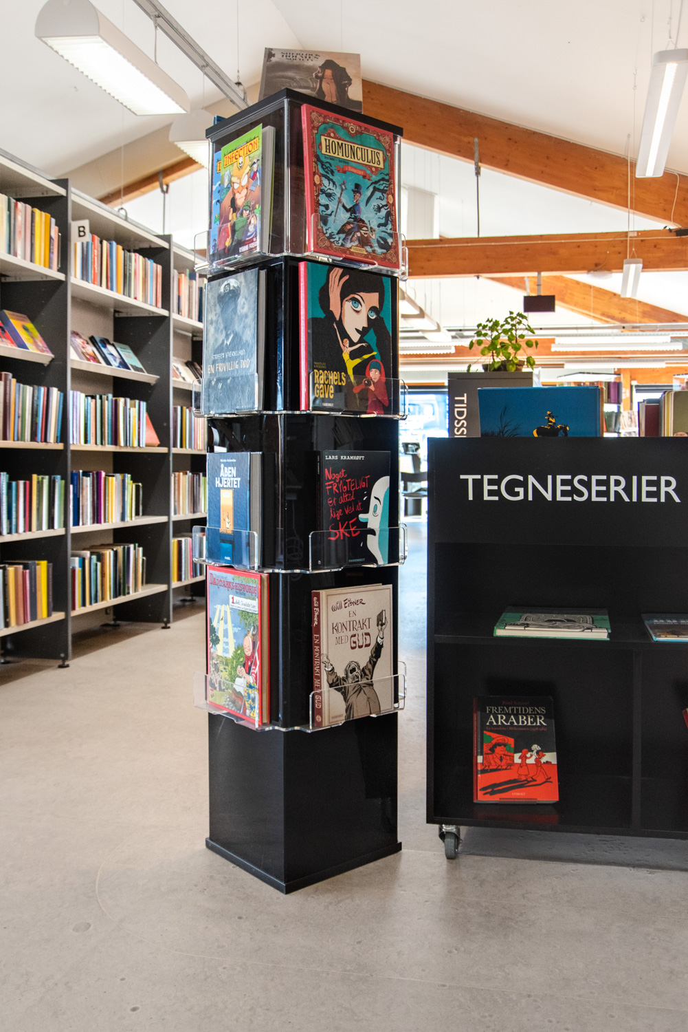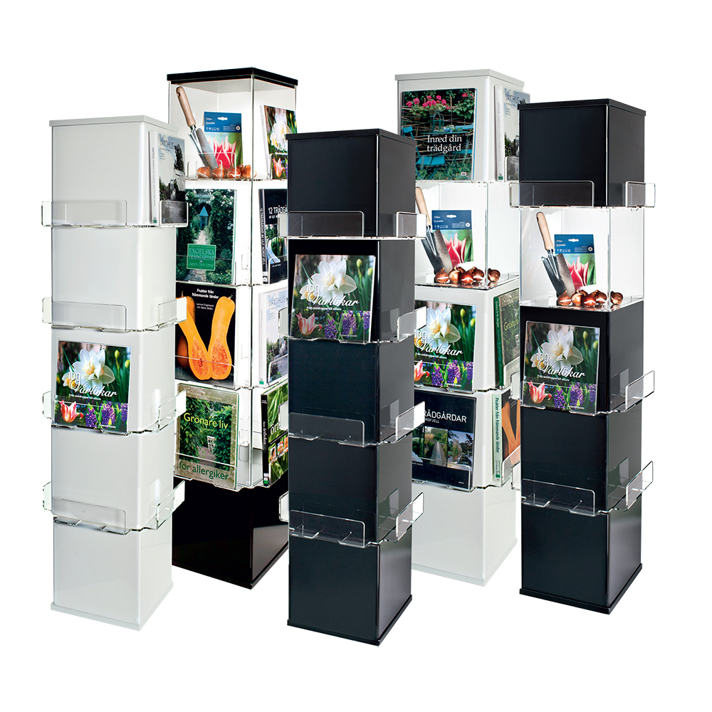 Smart bygbart udstillingstårn til udstilling af bøger, magasiner og andre udstillingsgenstande.