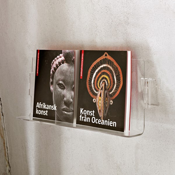 Flot, væghængt udstillingshylde i kraftig akryl med flot detaljefinish.