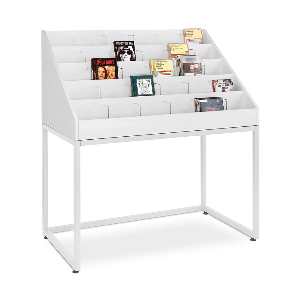Krybben har 5 etager, som hver er opdelt i 6 rummelige fag til CD'er og DVD'er, hvilket giver et godt overblik og god tilgængelighed.