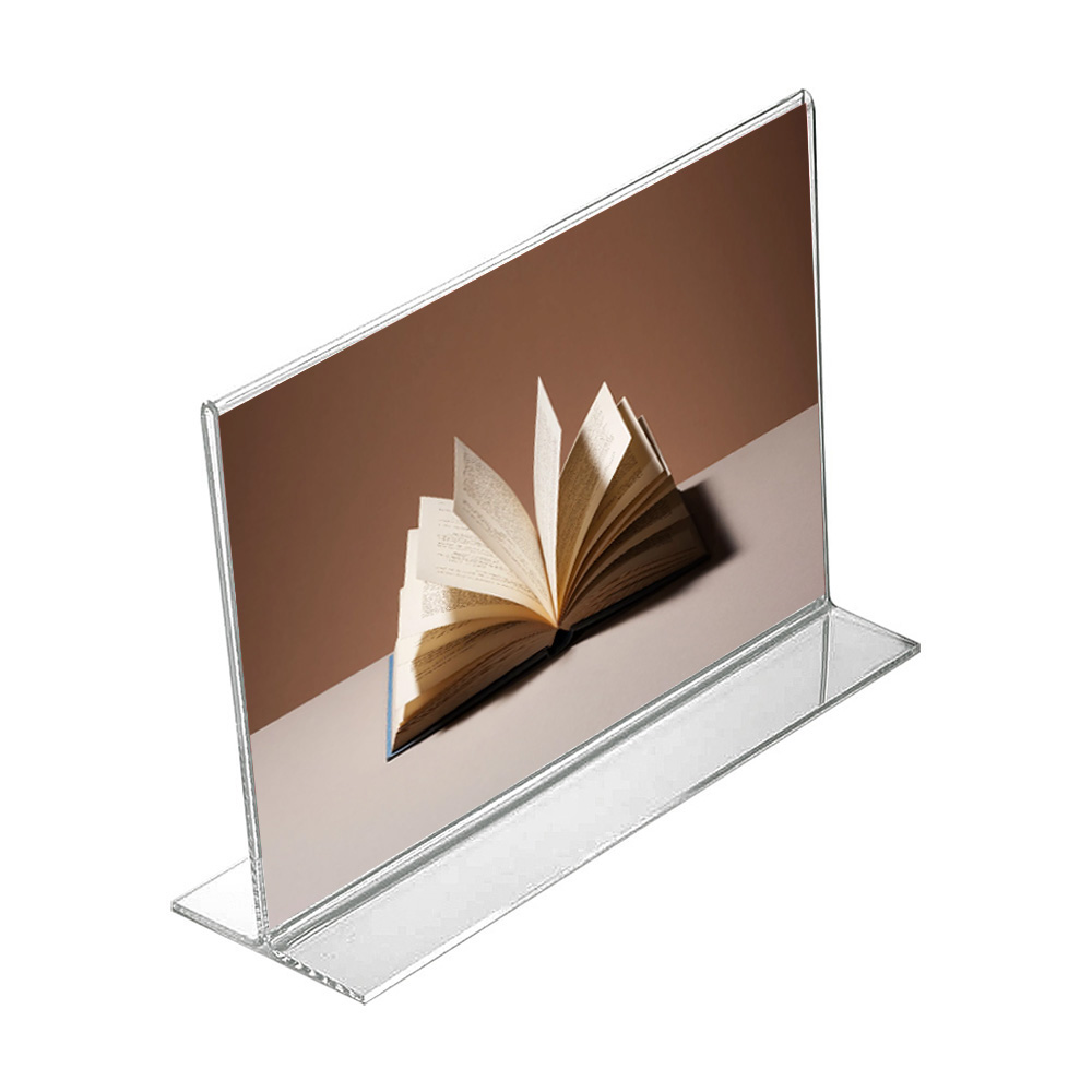 Praktisk dobbeltsidet stander til skilte og informationer til bord, skranke, hylde, vinduer m.m..
