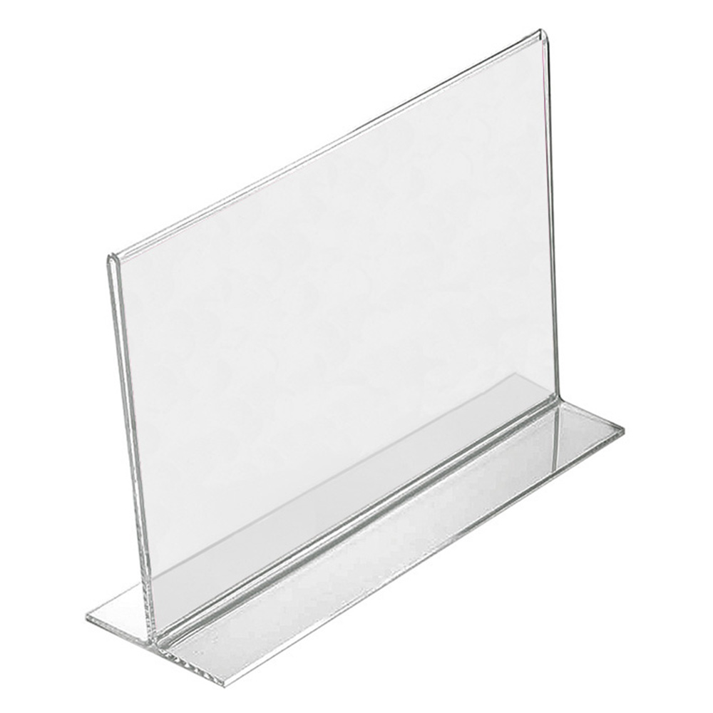 Praktisk dobbeltsidet stander til skilte og informationer til bord, skranke, hylde, vinduer m.m..