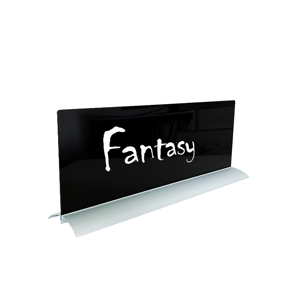Eksklusiv dobbeltsidet skrivbart skilt til borde, skranker, hylder, vinduer m.m.
