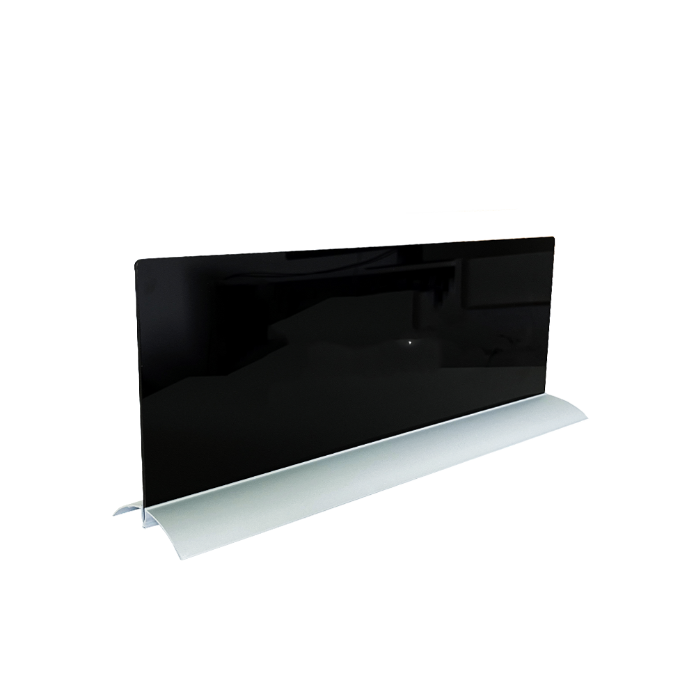 Dobbeltsidet sort akrylskilt på fod