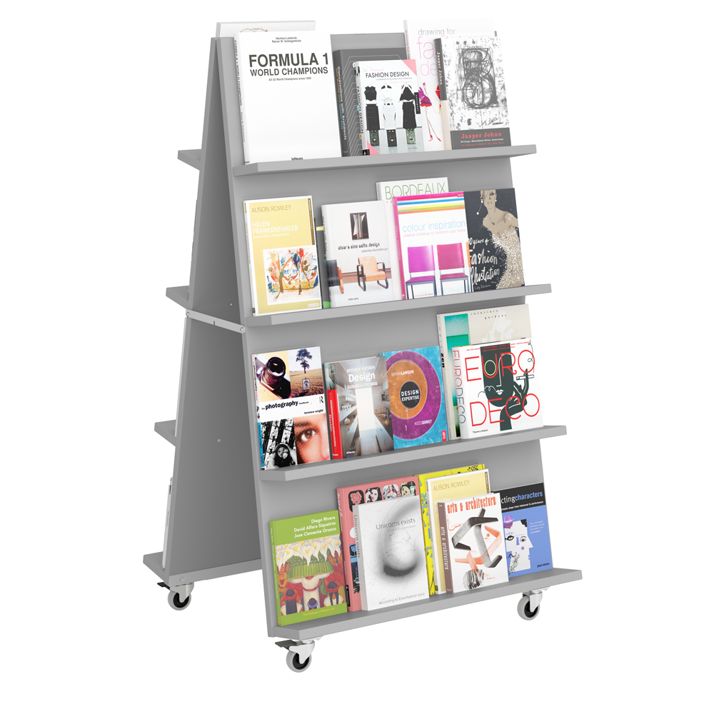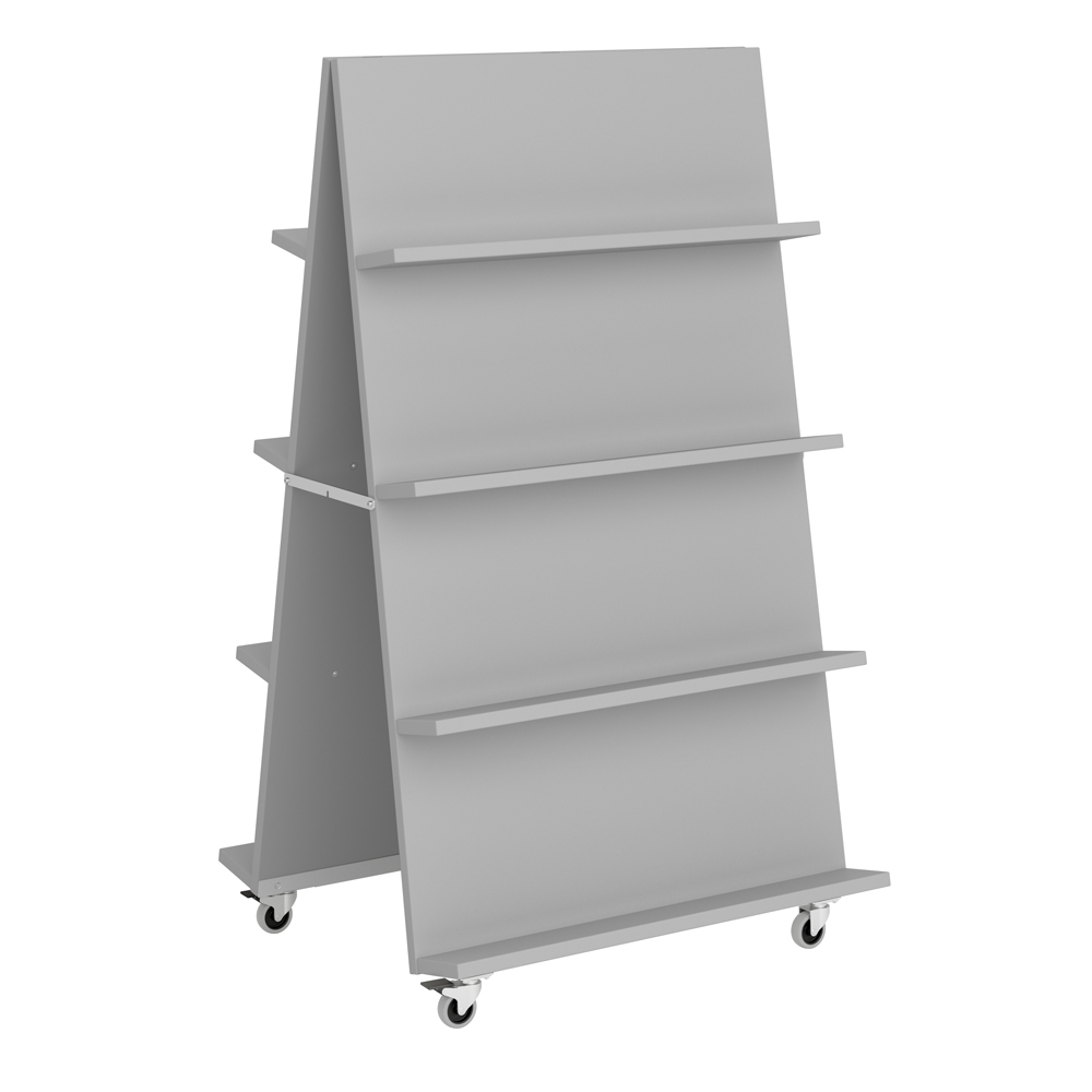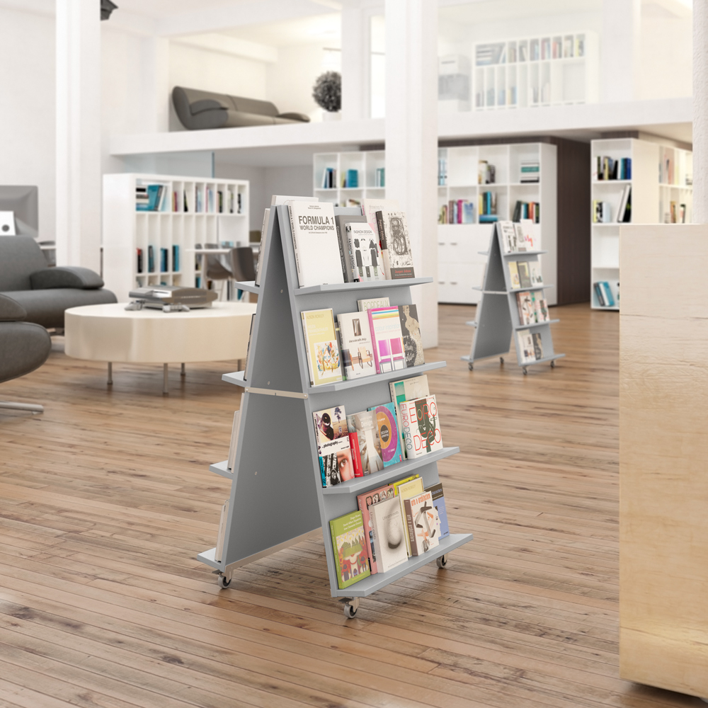 Med det mobile A-skilt kan du udstille bøger i åbne områder eller indgange enkeltvis eller i grupper for f.eks. at skabe en komplet udstillingsvæg.