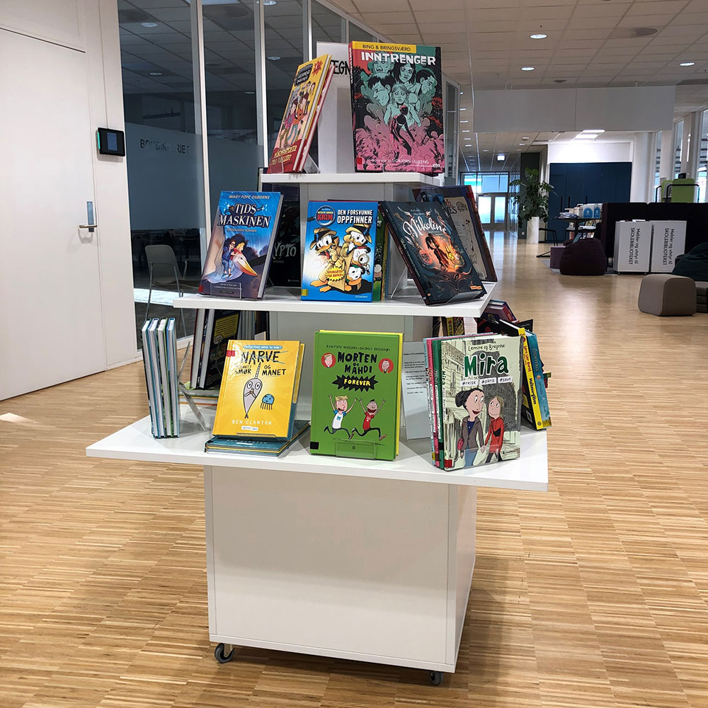 Funktionelt, alsidigt podie til udstilling af bøger eller andre medier. Ideel som blikfang ved indgangen eller som temaspot på biblioteket.