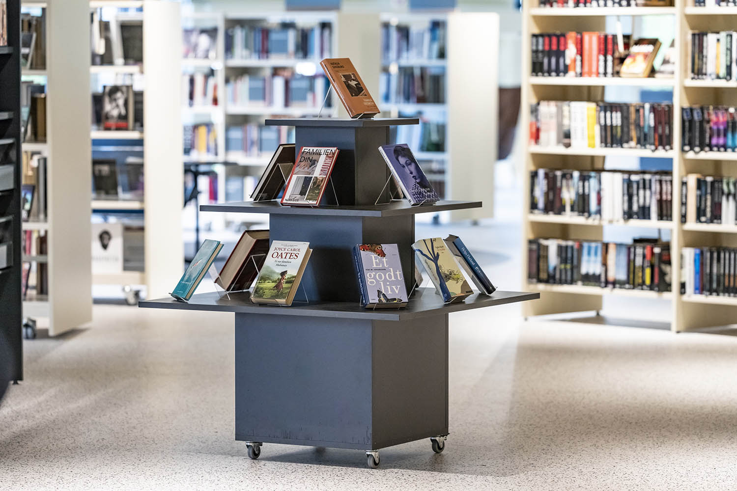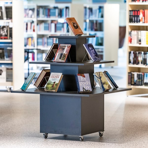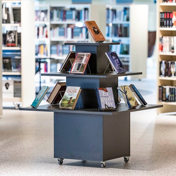 Funktionelt, alsidigt podie til udstilling af bøger eller andre medier. Ideel som blikfang ved indgangen eller som temaspot på biblioteket.
