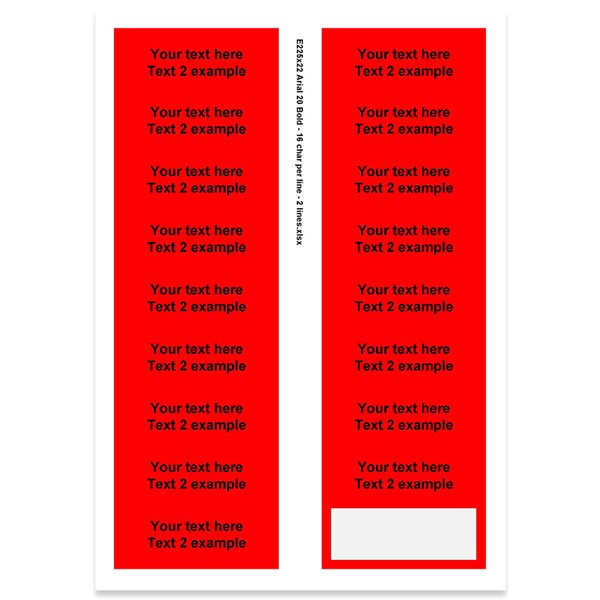 Teksten er centreret på etiketterne, og skrifttypen er Arial.