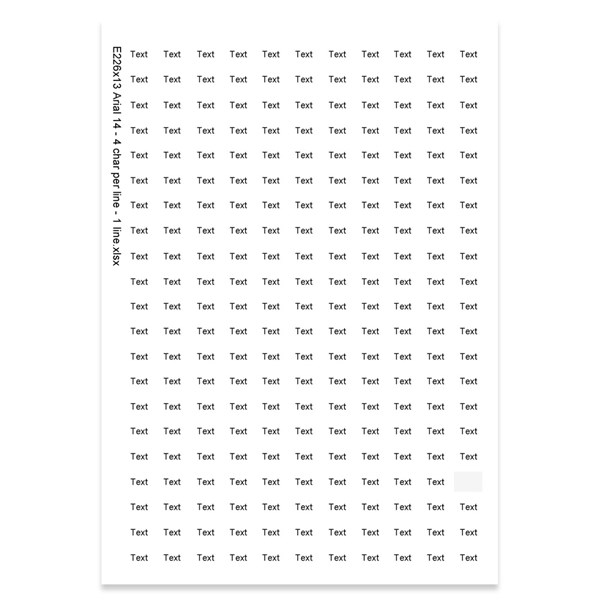 Teksten er centreret på etiketterne, og skrifttypen er Arial.