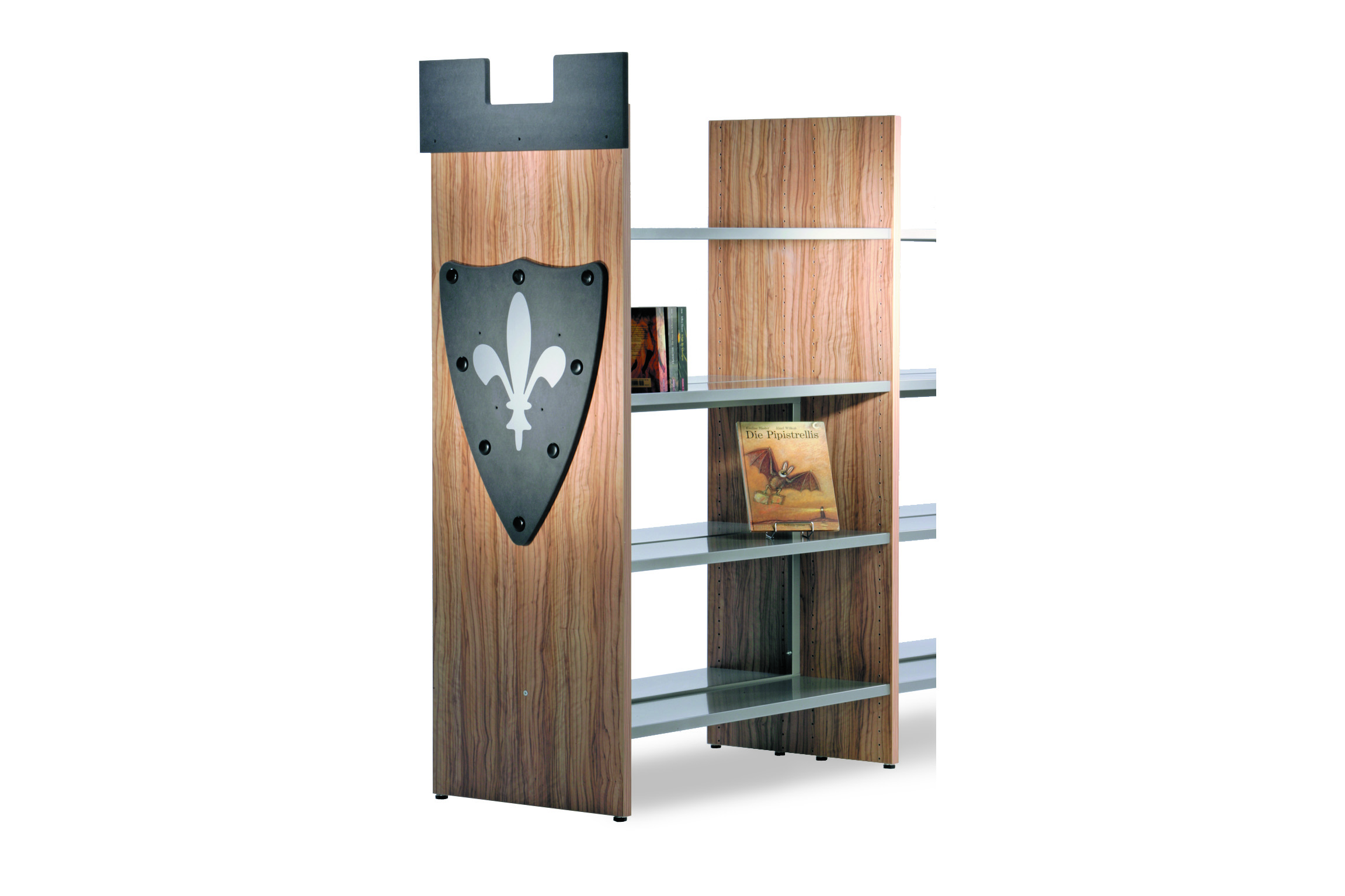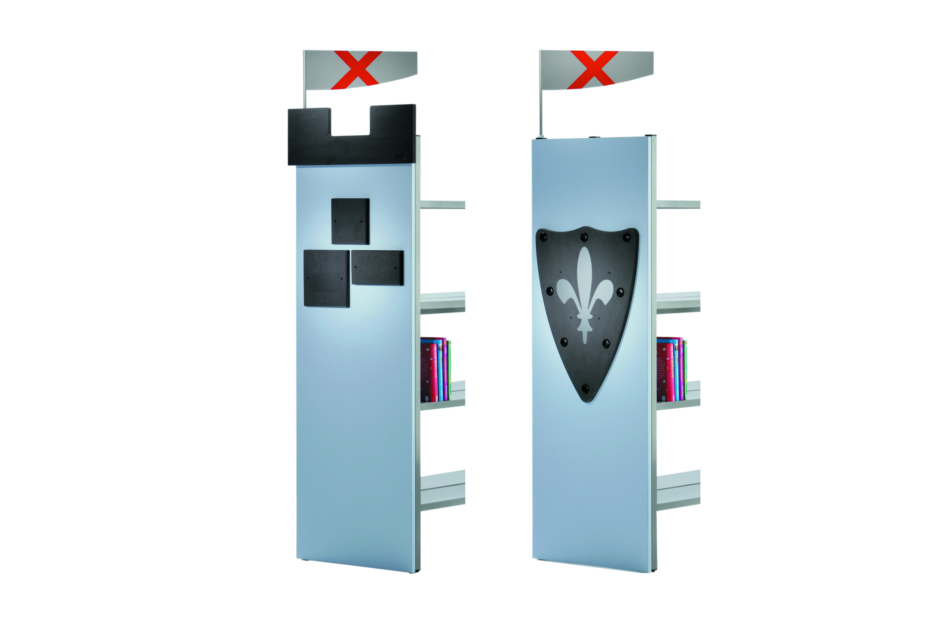 Tilføj et eventyrligt element til nøgne reoler med træsidestykker, der er dekoreret så de passer til temaet i bibliotekets børneafdeling. Dette tilbehør passer kun til dobbelt-sidet Uniflex og Quadra reolsystemer.