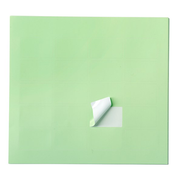 Selvklæbende, udstansede farvemarkeringer i ark til mærkning af bøger og lignende med trykt eller påskrevet tekst.
