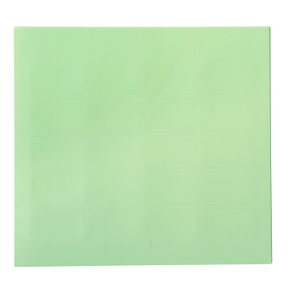 Selvklæbende, udstansede farvemarkeringer i ark til mærkning af bøger og lignende med trykt eller påskrevet tekst.