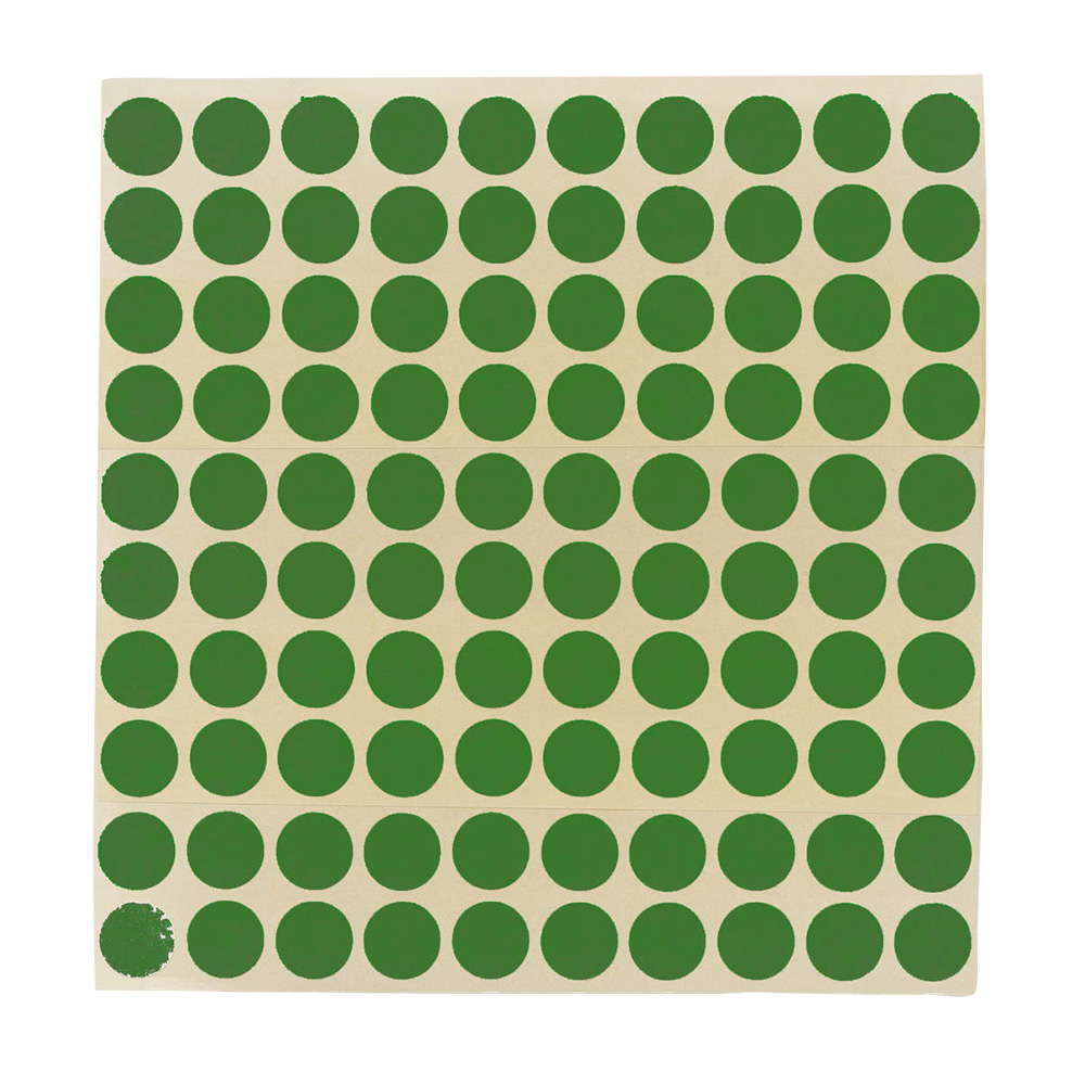 Permanent selvklæbende, udstansede farvemarkeringer i ark til mærkning af bøger og lignende.