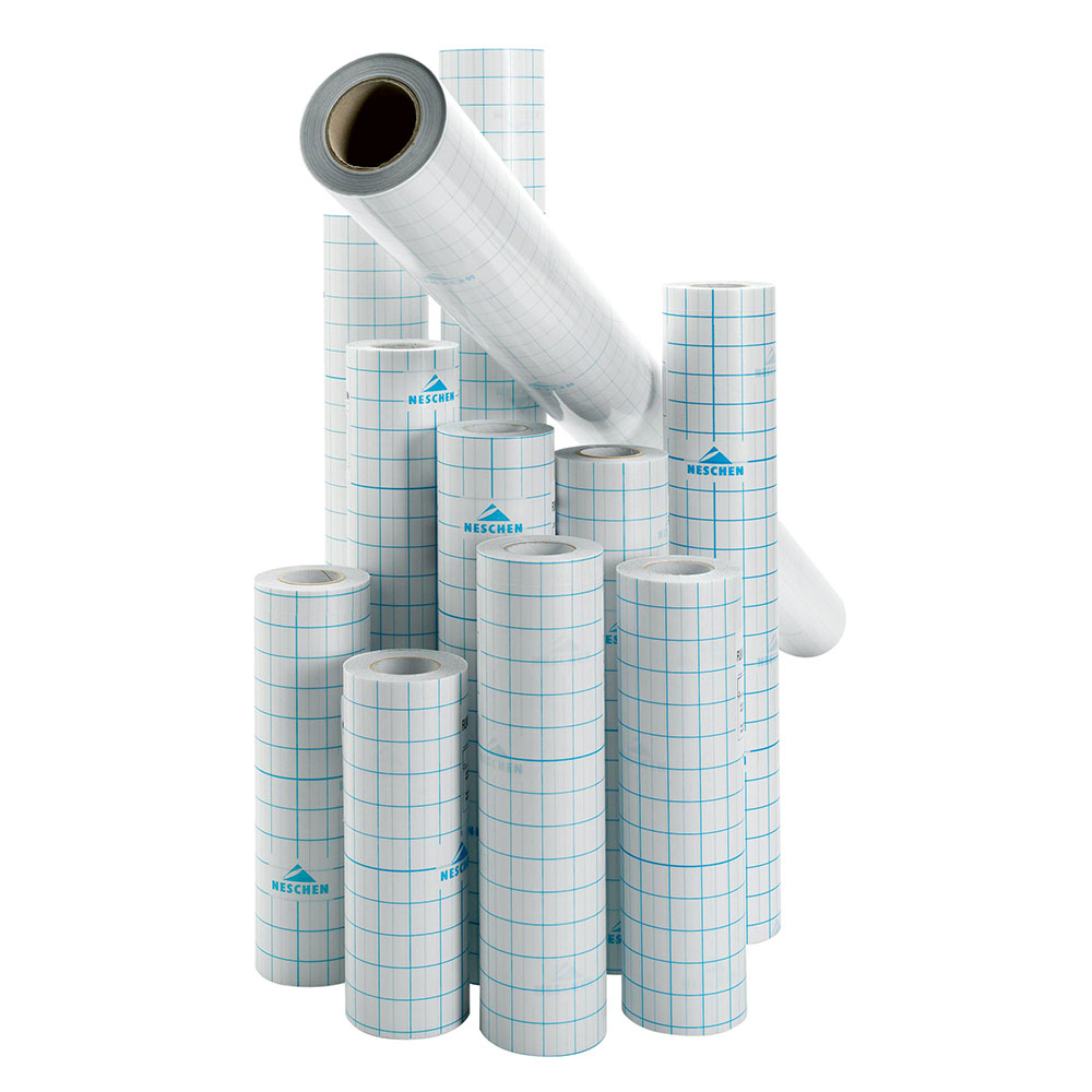 Selvklæbende, transparent, blank plastfilm i en blød kvalitet.