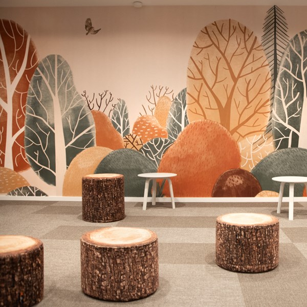 De iøjnefaldende, faste, men alligevel komfortable og stabile Floki Tree puffer har en slående lighed med en ægte træstub. De fås i 2 højder til både børn og voksne.