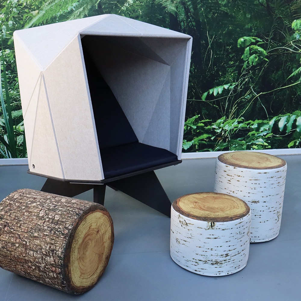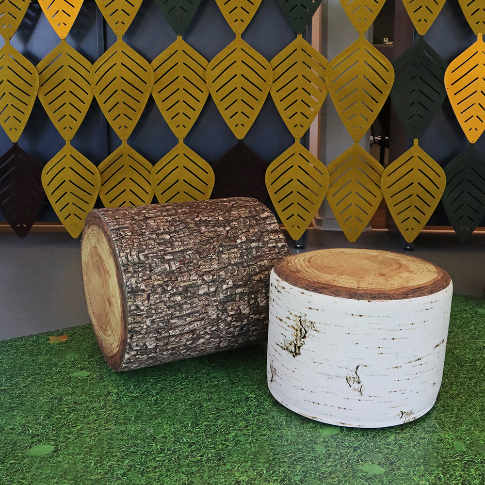 De iøjnefaldende, faste, men alligevel komfortable og stabile Floki Tree puffer har en slående lighed med en ægte træstub. De fås i 2 højder til både børn og voksne.
