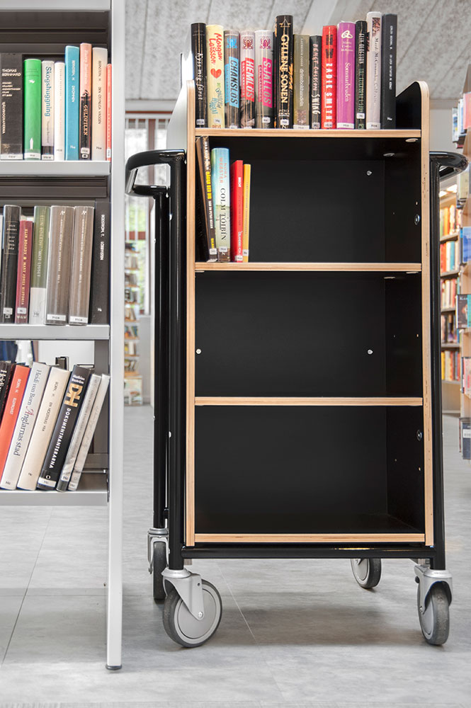 Denne bogvogn kan bruges som et mini reolsystem, der kan køres rundt i biblioteket efter behov.