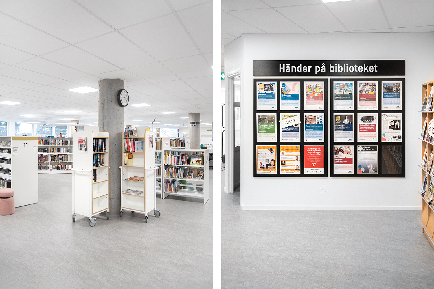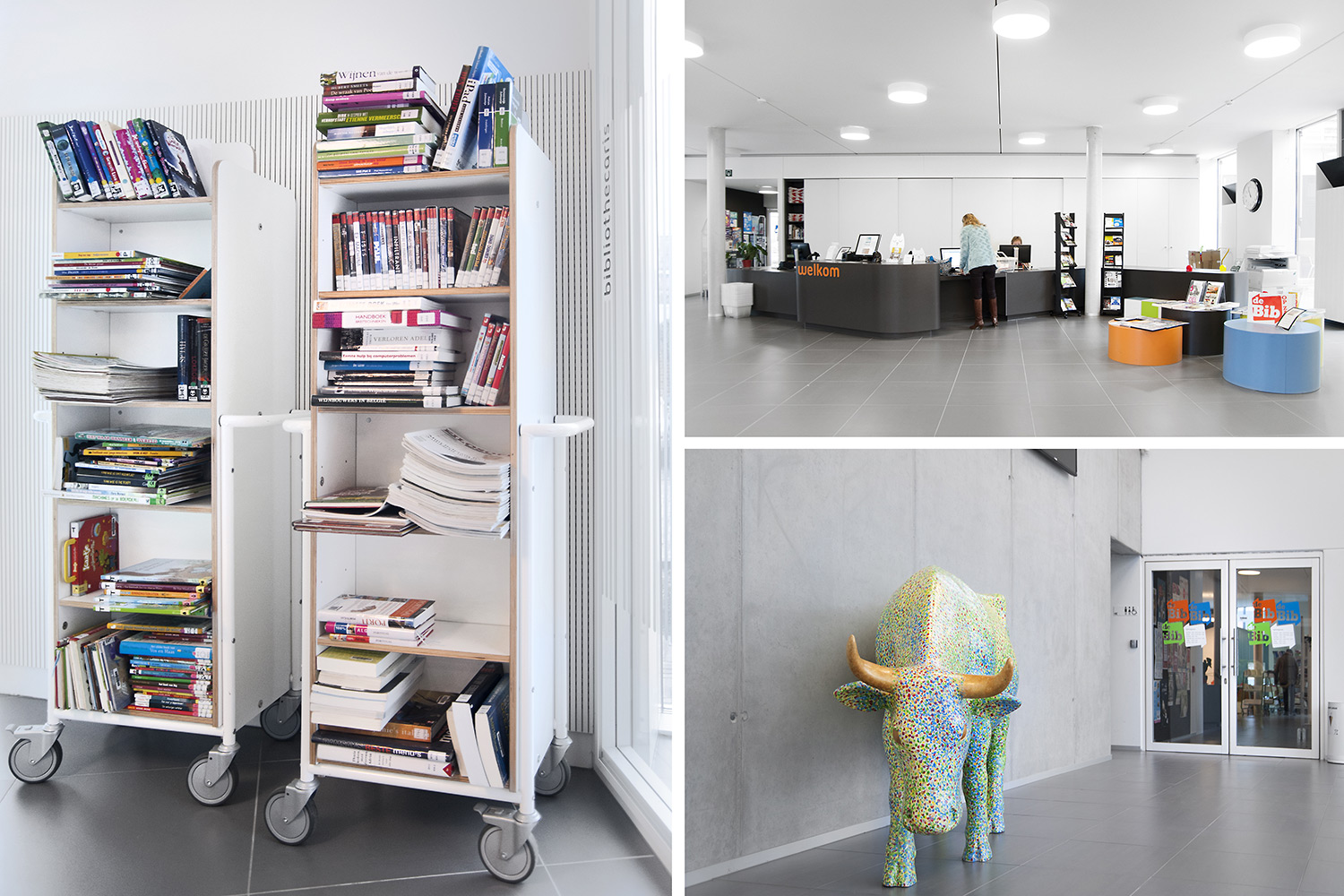 Denne bogvogn kan bruges som et reolsystem, der kan køres rundt i biblioteket efter behov. Perfekt til udlån, returneringer og udstilling af nye bøger.