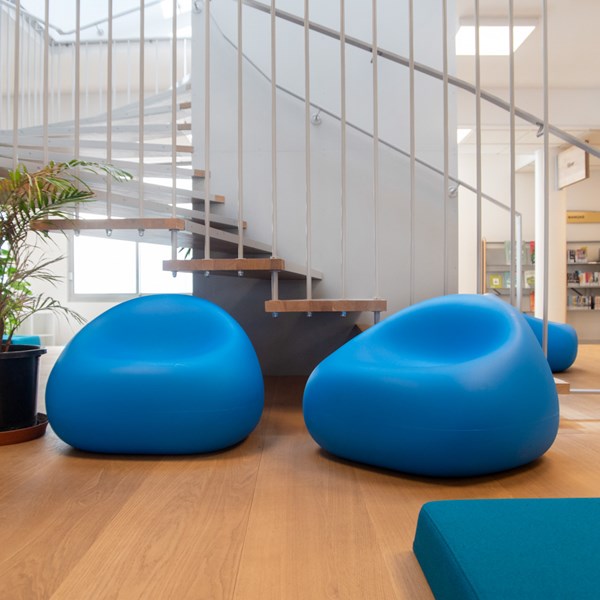 Gumball er en robust stol formet som en 'nedsunken sækkestol' og tilbyder den perfekte plads til samvær med venner eller med en god bog.