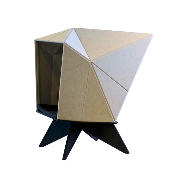 HabiCave er designet i Danmark. Det er et skulpturelt møbel designet med inspiration fra den japanske origami. Den enkle og gennemtænkte æstetik appellerer til sanserne, og det akustiske materiale er ikke kun med til at reducere støjniveauet inde i hulen, men også i rummet.