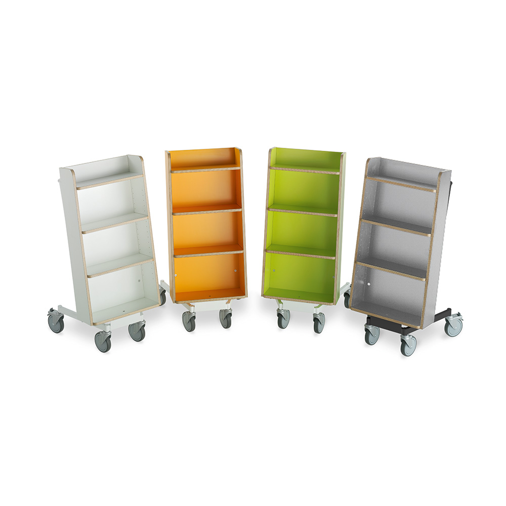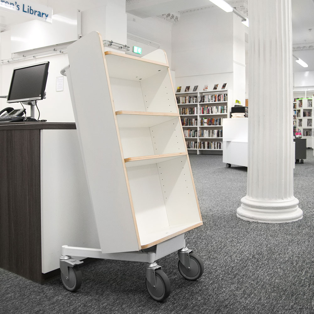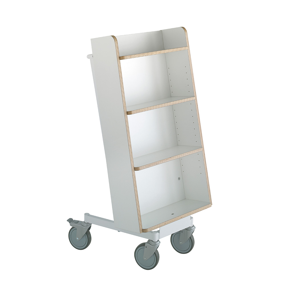 Bogvognens hældning sikrer stabil opbevaring og giver et godt overblik over de bøger, du skal håndtere.