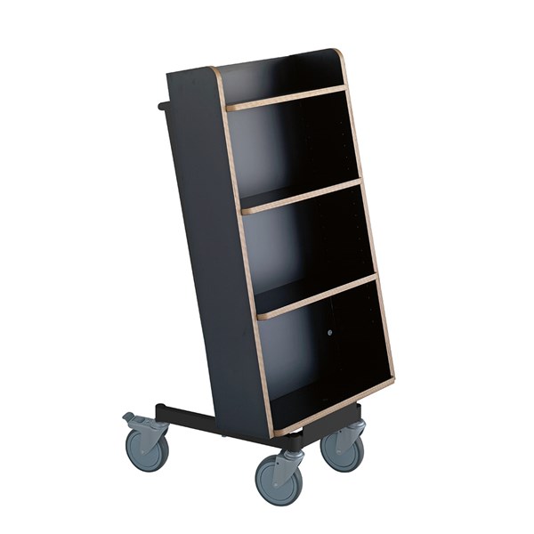 Bogvognens hældning sikrer stabil opbevaring og giver et godt overblik over de bøger, du skal håndtere.