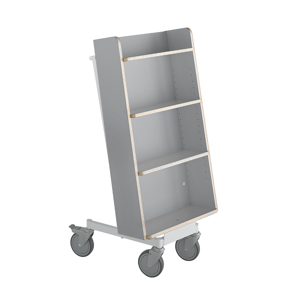 Bogvognens hældning sikrer stabil opbevaring og giver et godt overblik over de bøger, du skal håndtere.
