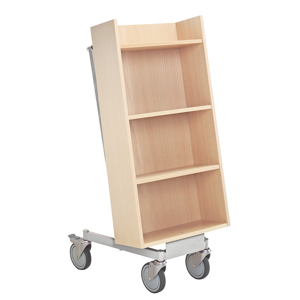 Bogvognens hældning sikrer stabil opbevaring og giver et godt overblik over de bøger, du skal håndtere.